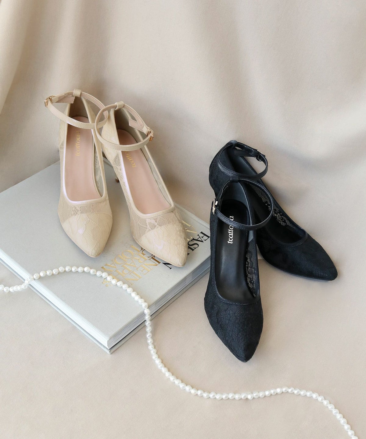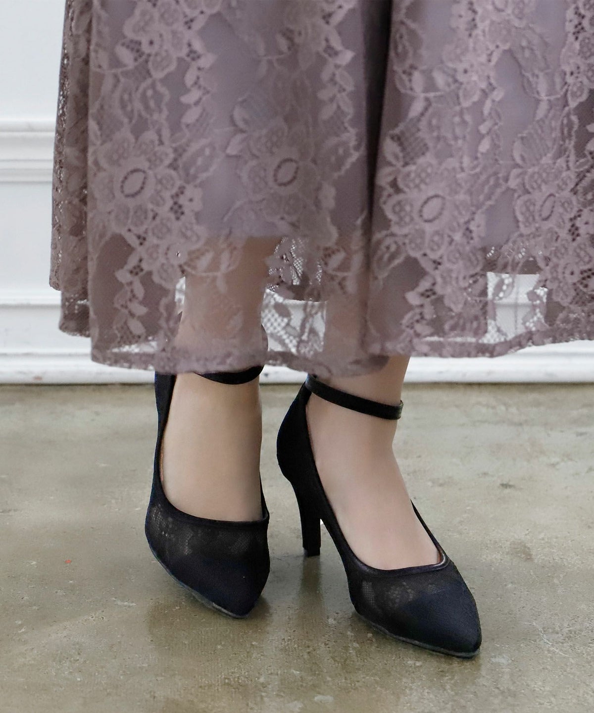 GIRL(ガール) ストラップ付き総レースポインテッドトゥパンプス