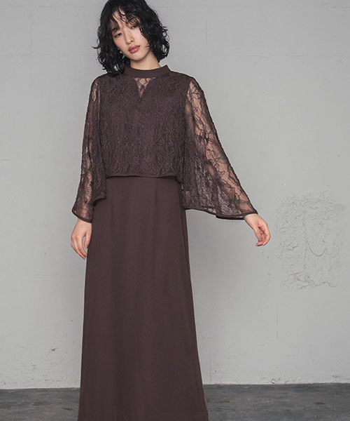 3WAY着用可能のレーストップスとIラインが女性らしい2点セットドレス。