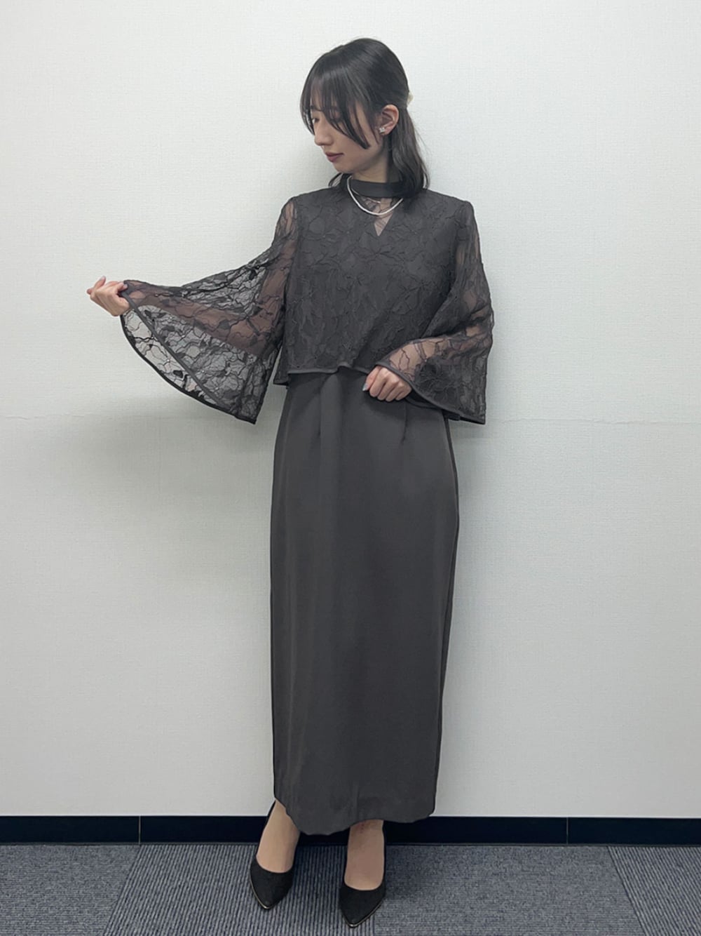 チャコールグレーを購入。フレア袖で二の腕の太さをカバーしてくれるのが有難い!あと、ワンピースの生地がしっかりしてるので、安心感もあります。