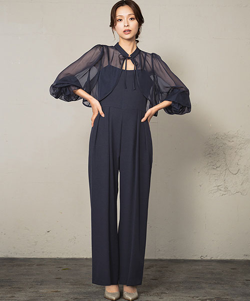 オールインワンはしっとりとした落ち感のあるジョーゼット生地を、ボレロは透け感のある繊細で柔らかなシフォン素材を使用しています。