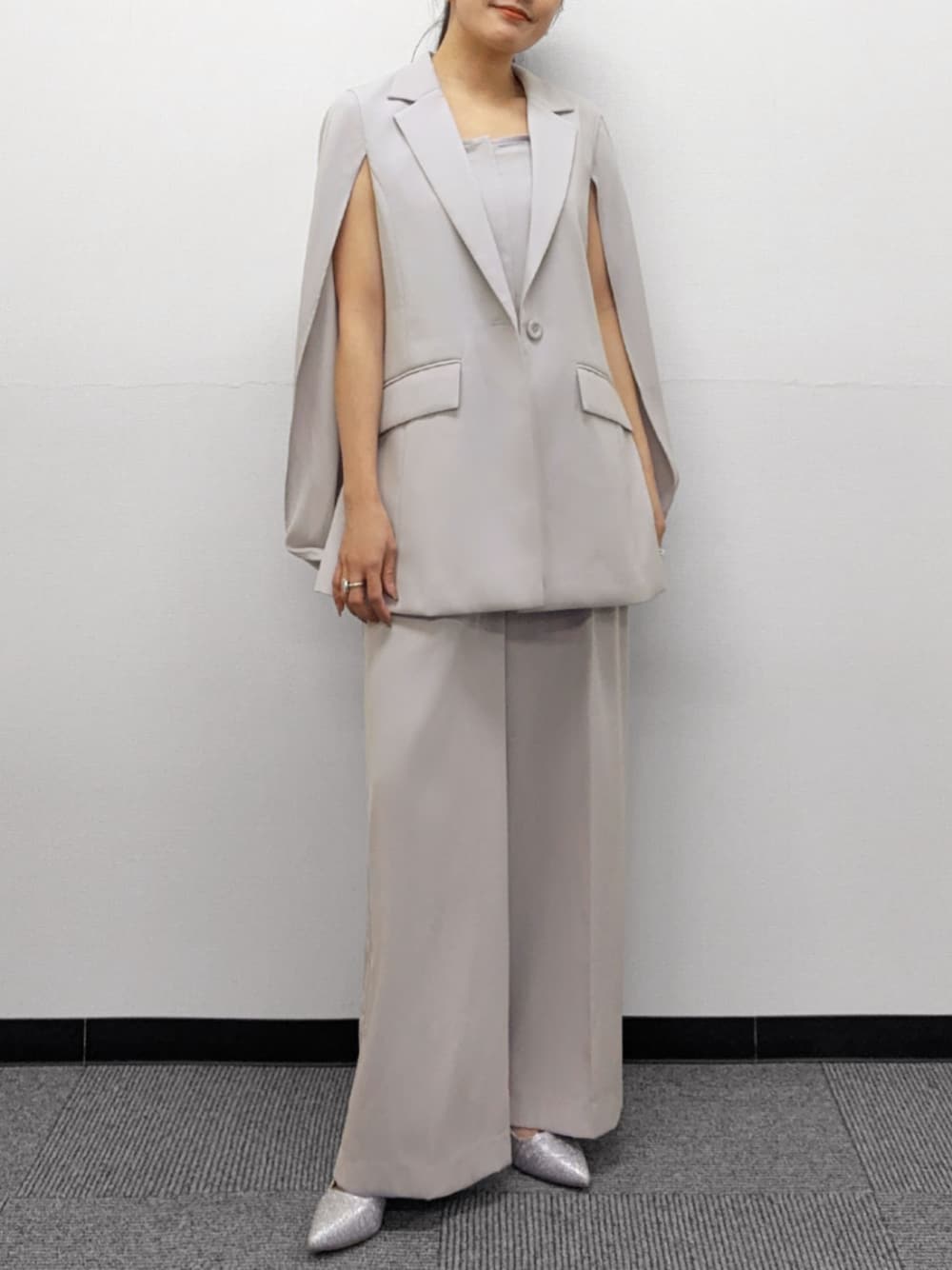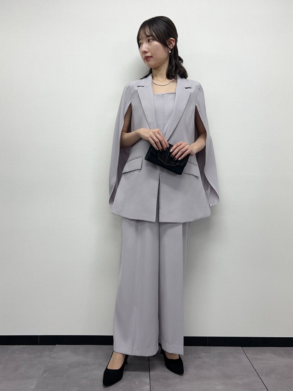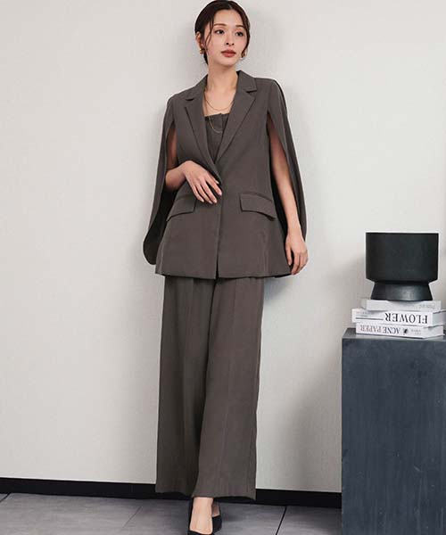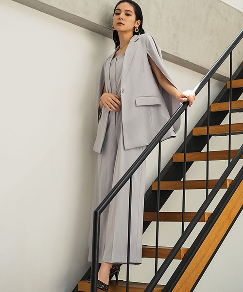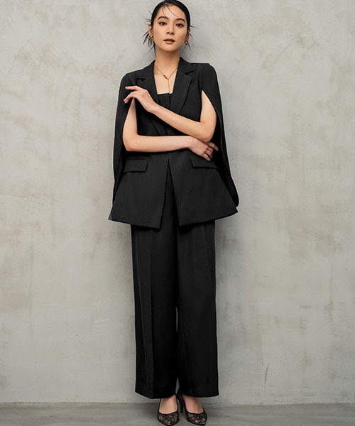 ケープジャケットとオールインワンの2点セットアップスーツ。