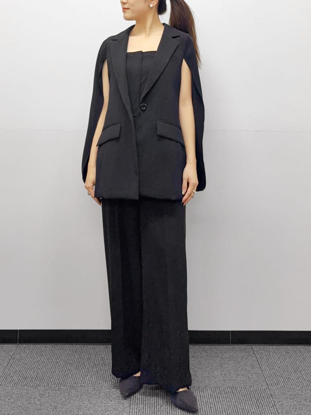 4. 洗えるケープジャケット・オールインワンセットアップスーツ パンツドレス