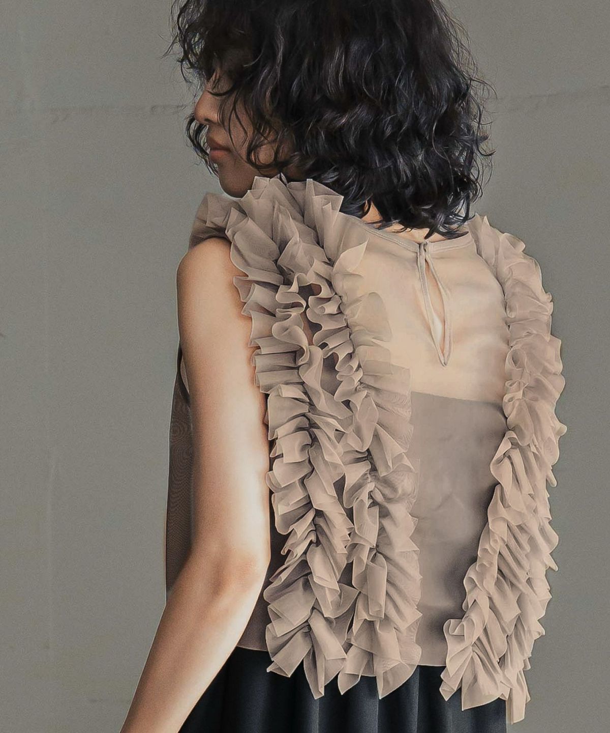 上品なチュールベストは上品な印象をプラスしてくれます。