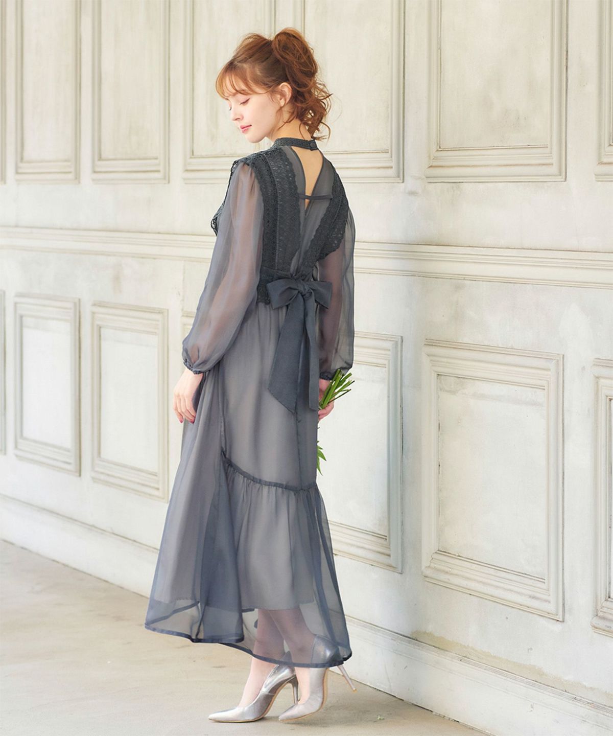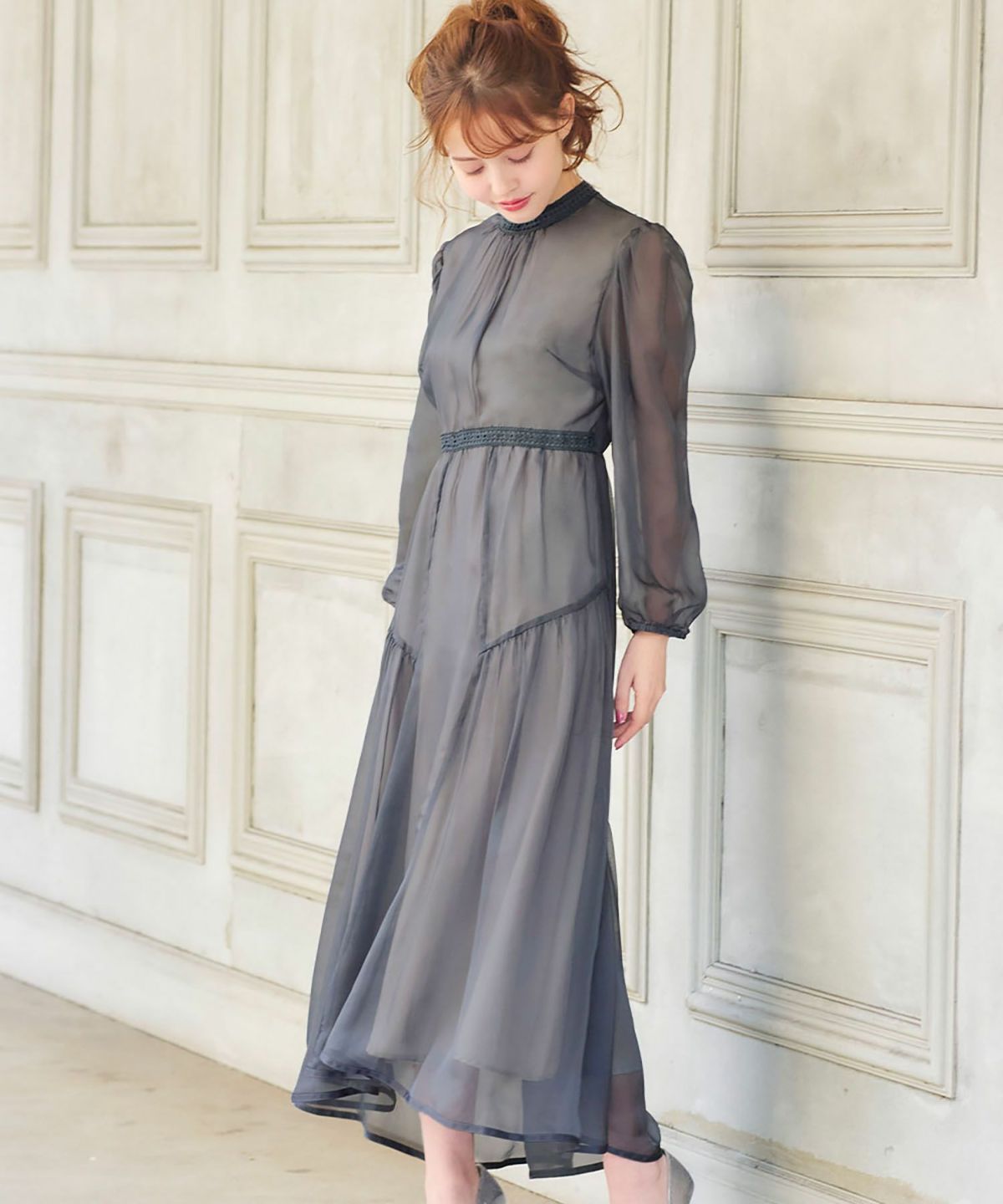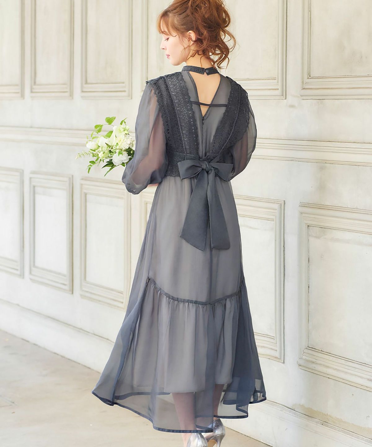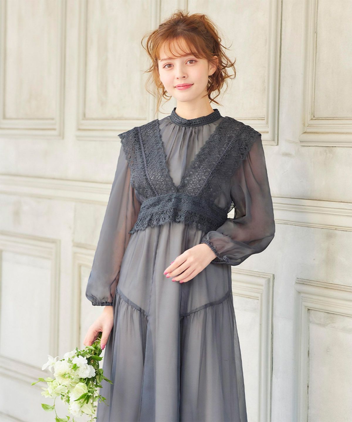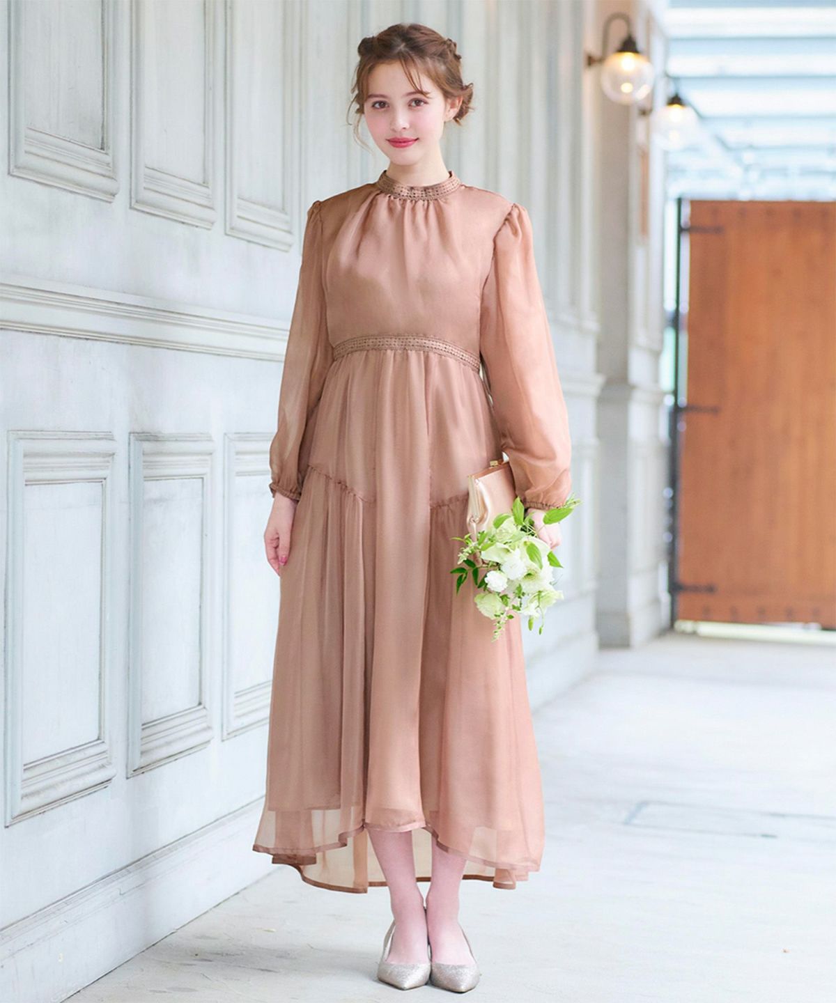 袖は上品な透け感で腕を優しく包み、気になる二の腕をさりげなくカバーします。