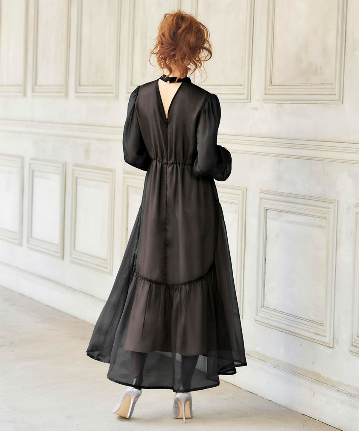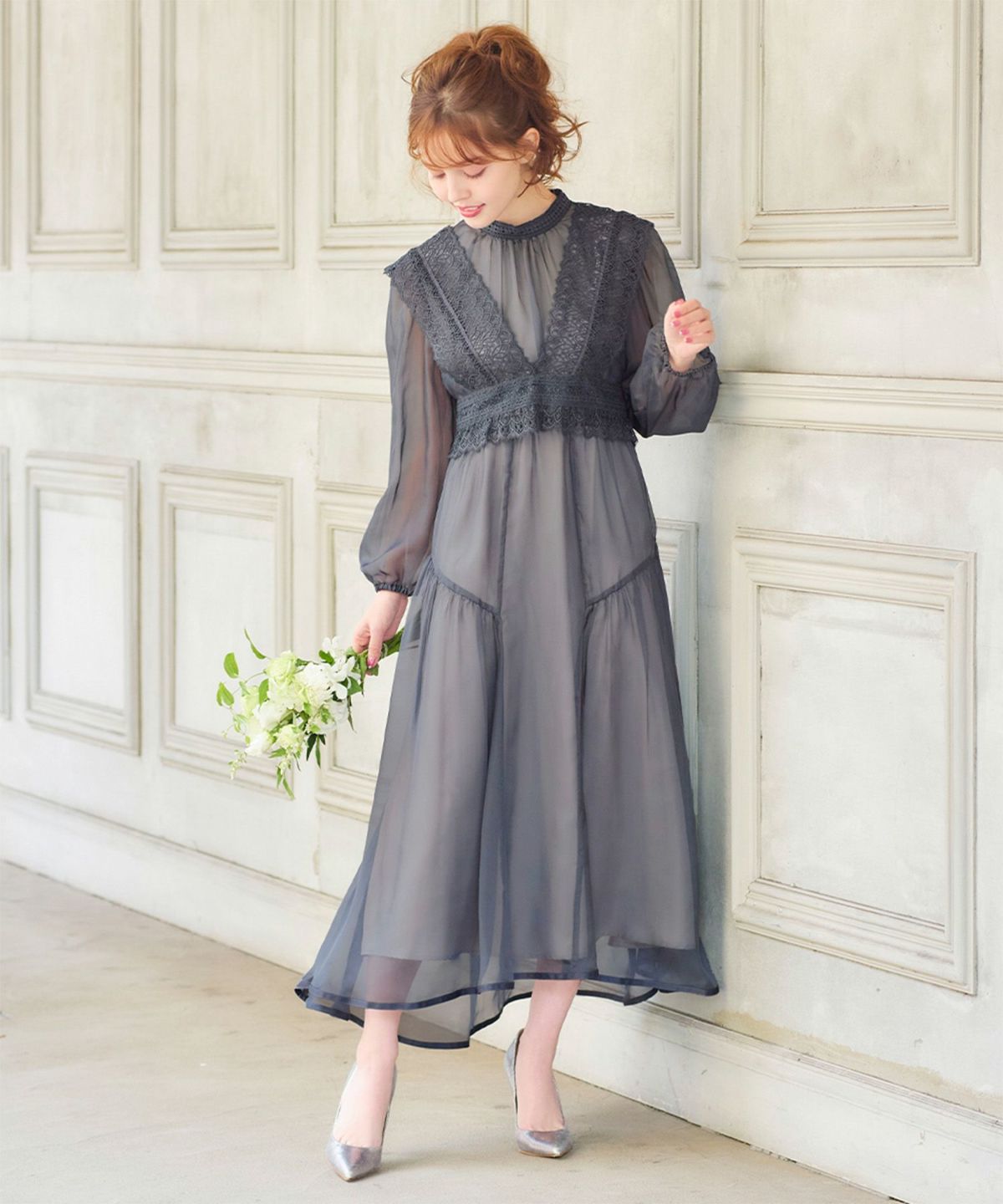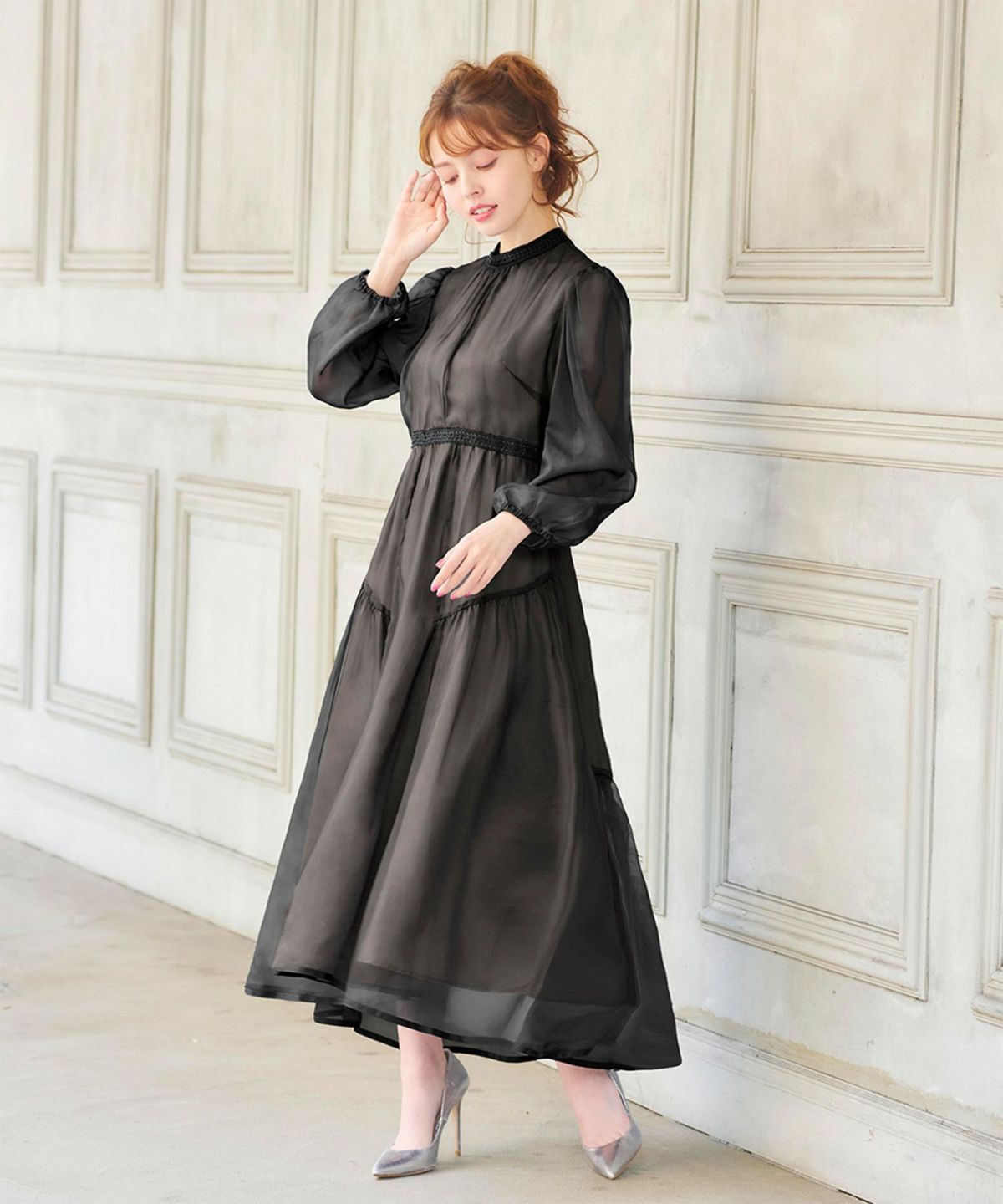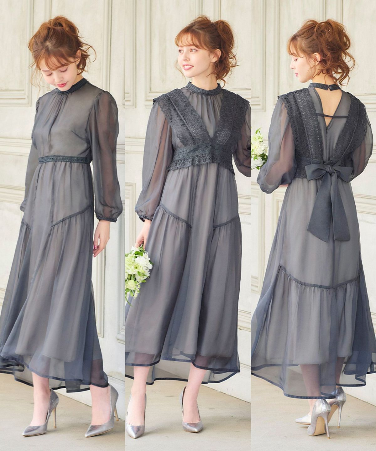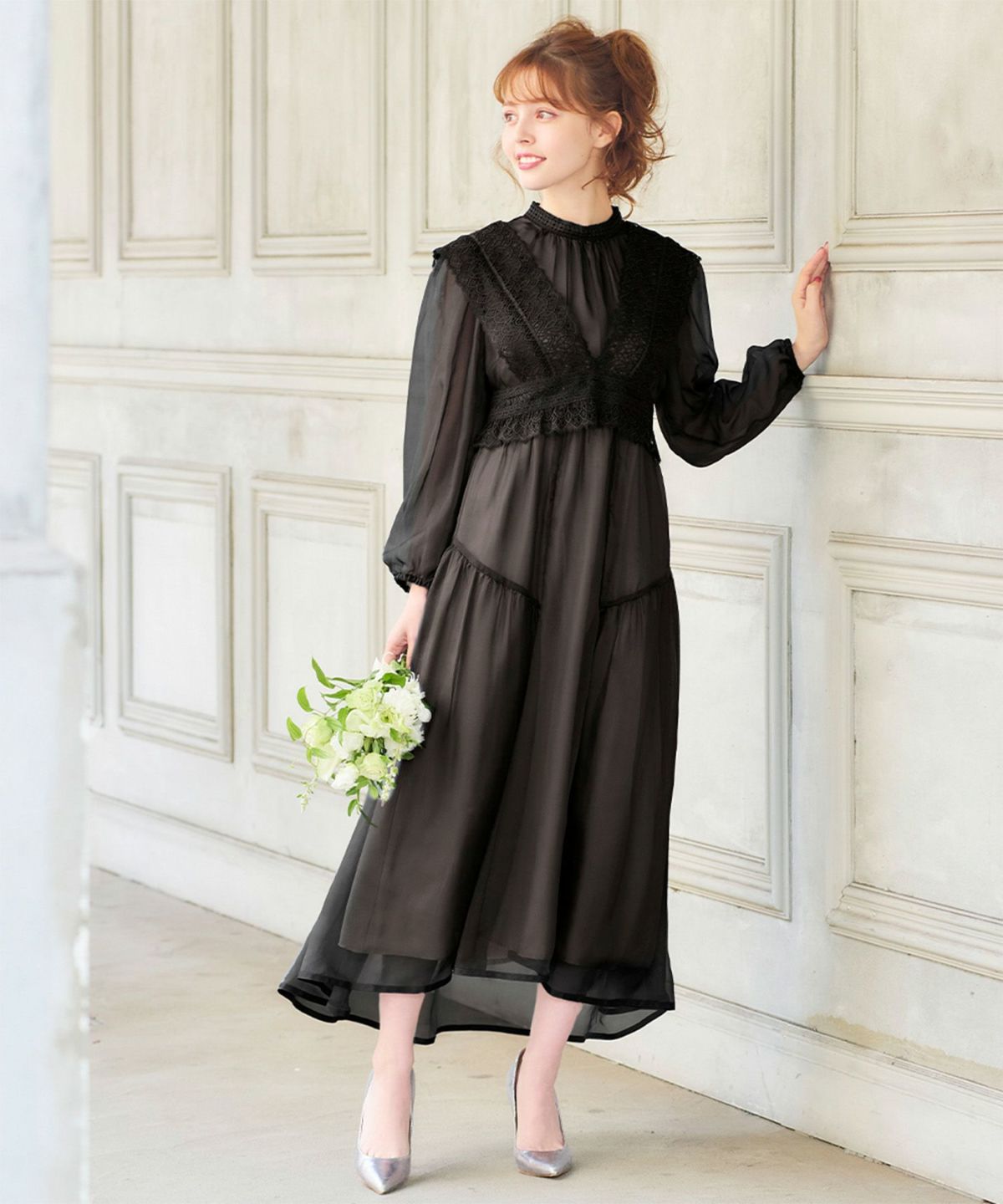 袖は上品な透け感で腕を優しく包み、気になる二の腕をさりげなくカバーします。
