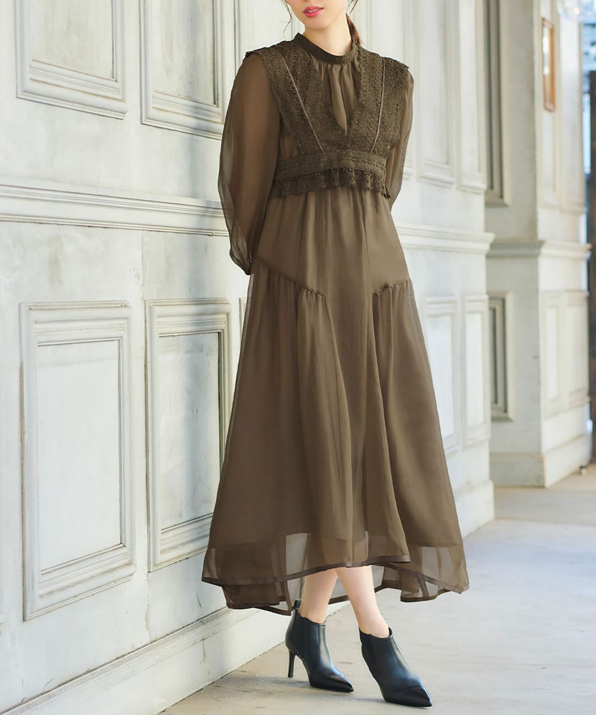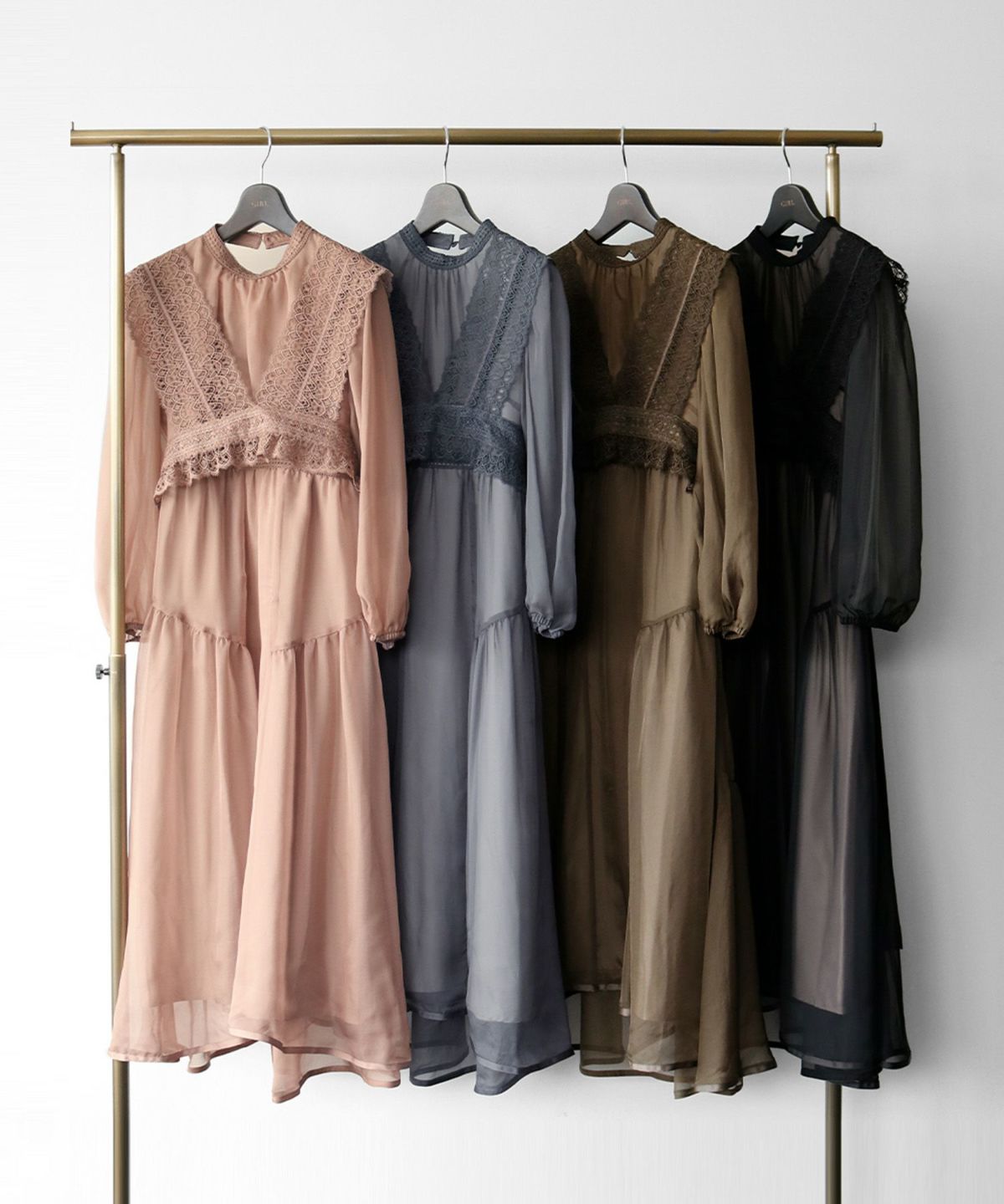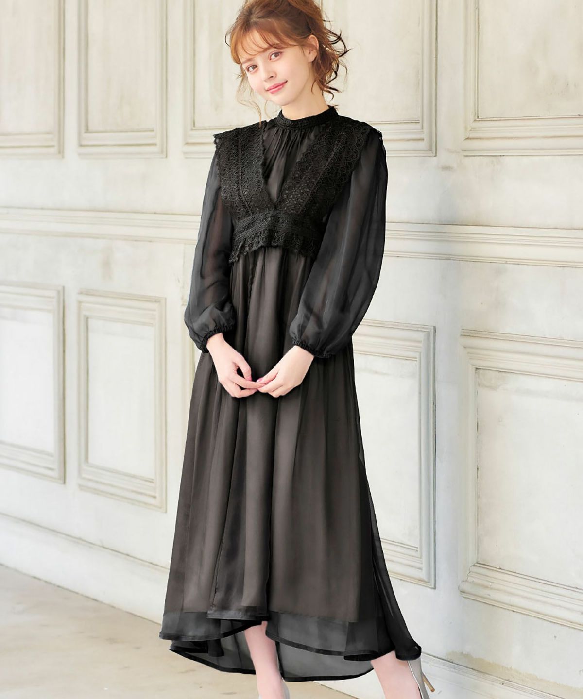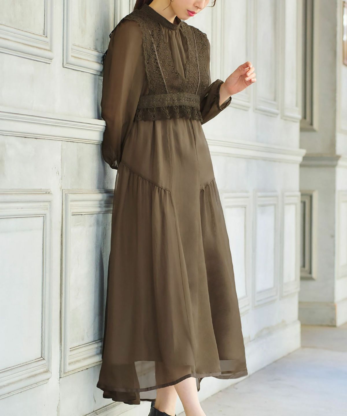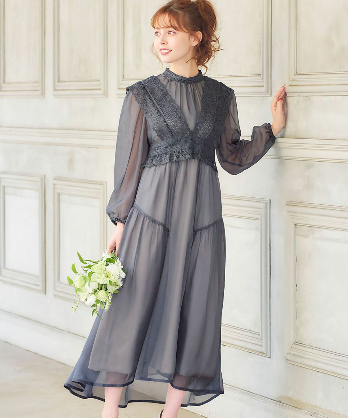 レースとオーガンジーを組み合わせ、異素材が奏でる贅沢な一枚となっております。