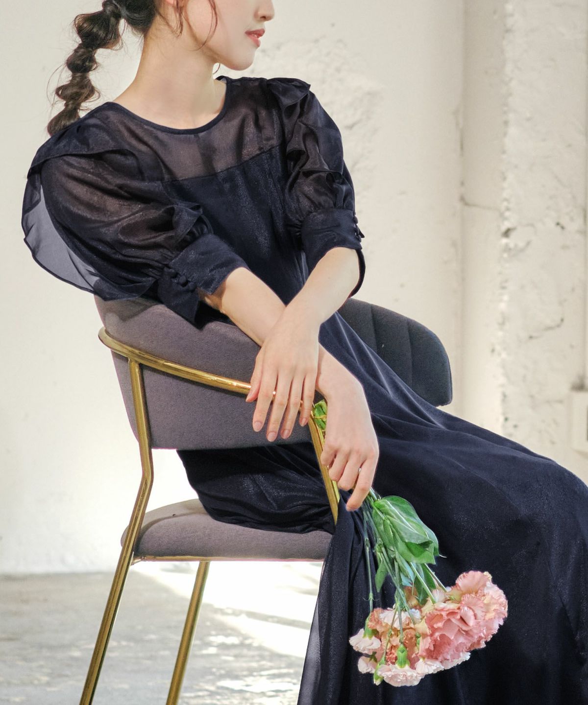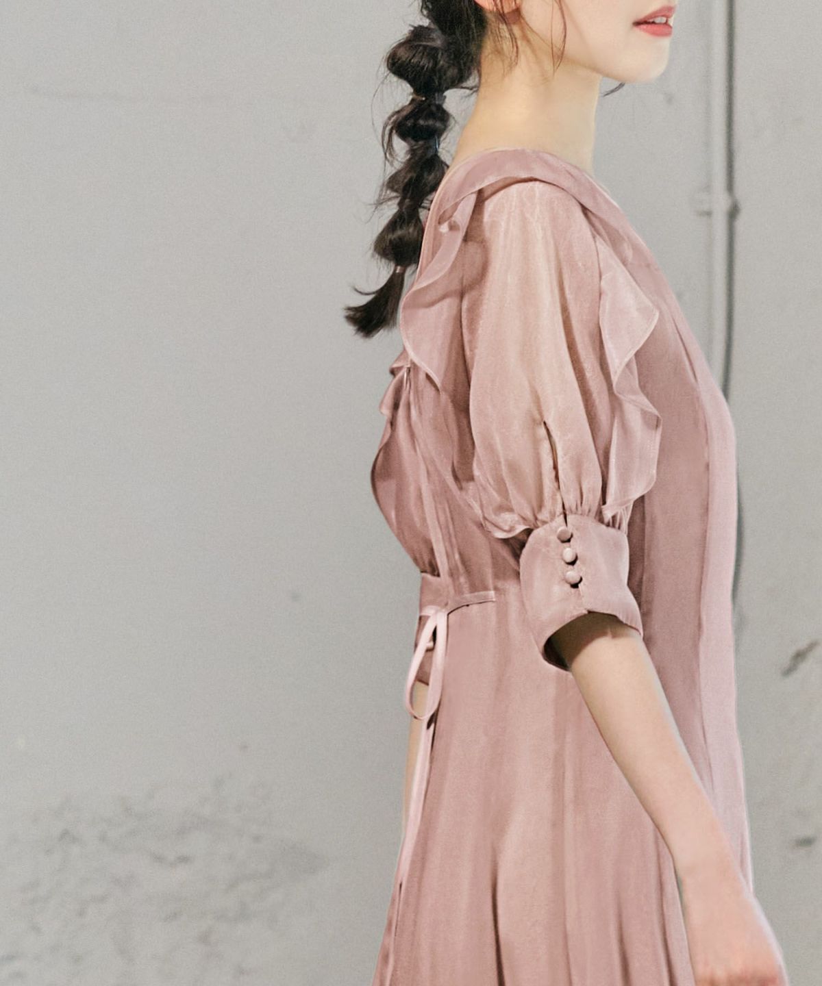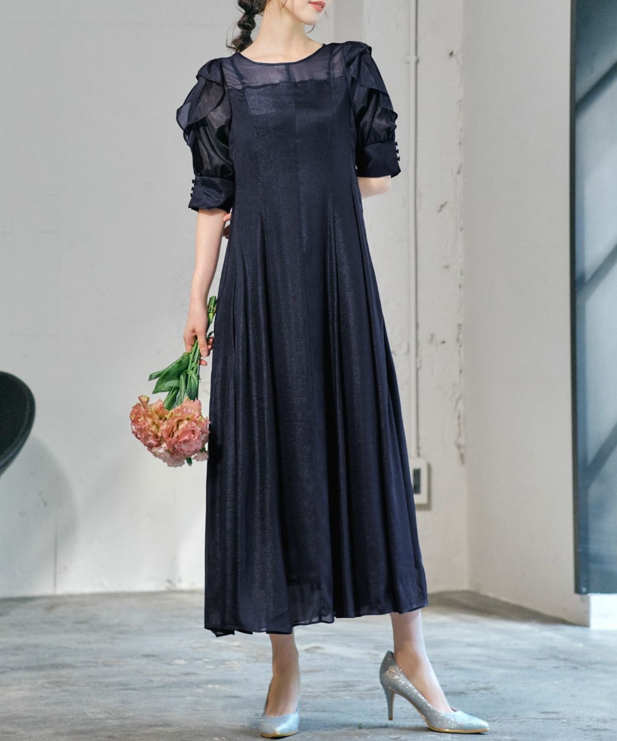 歩くたびに艶やかに揺れる裾が、品の良さを醸します。