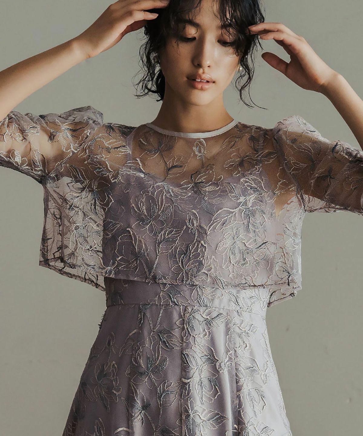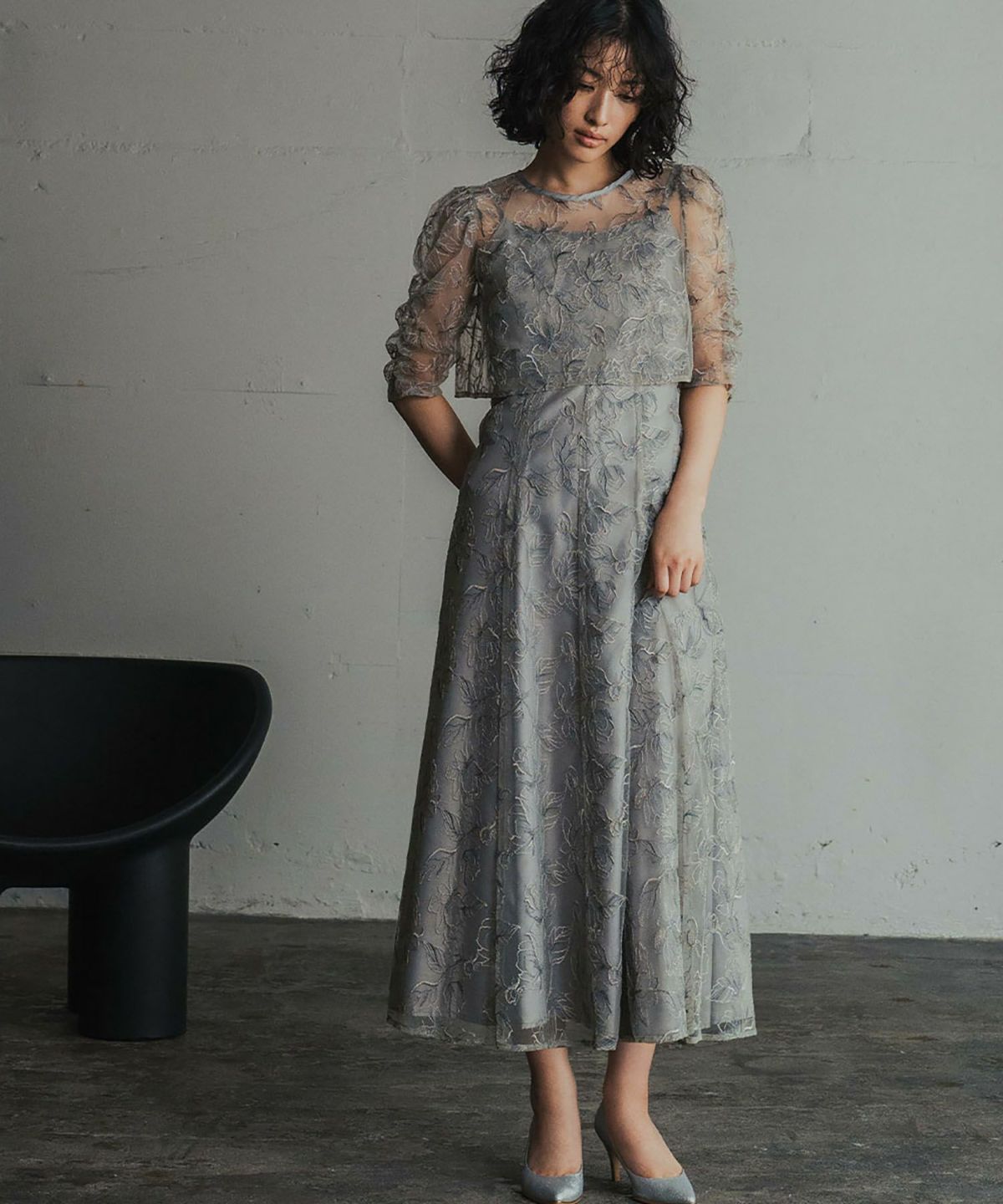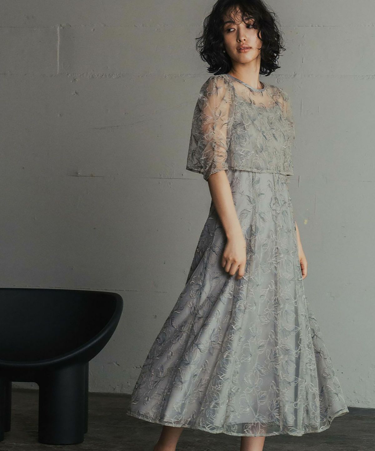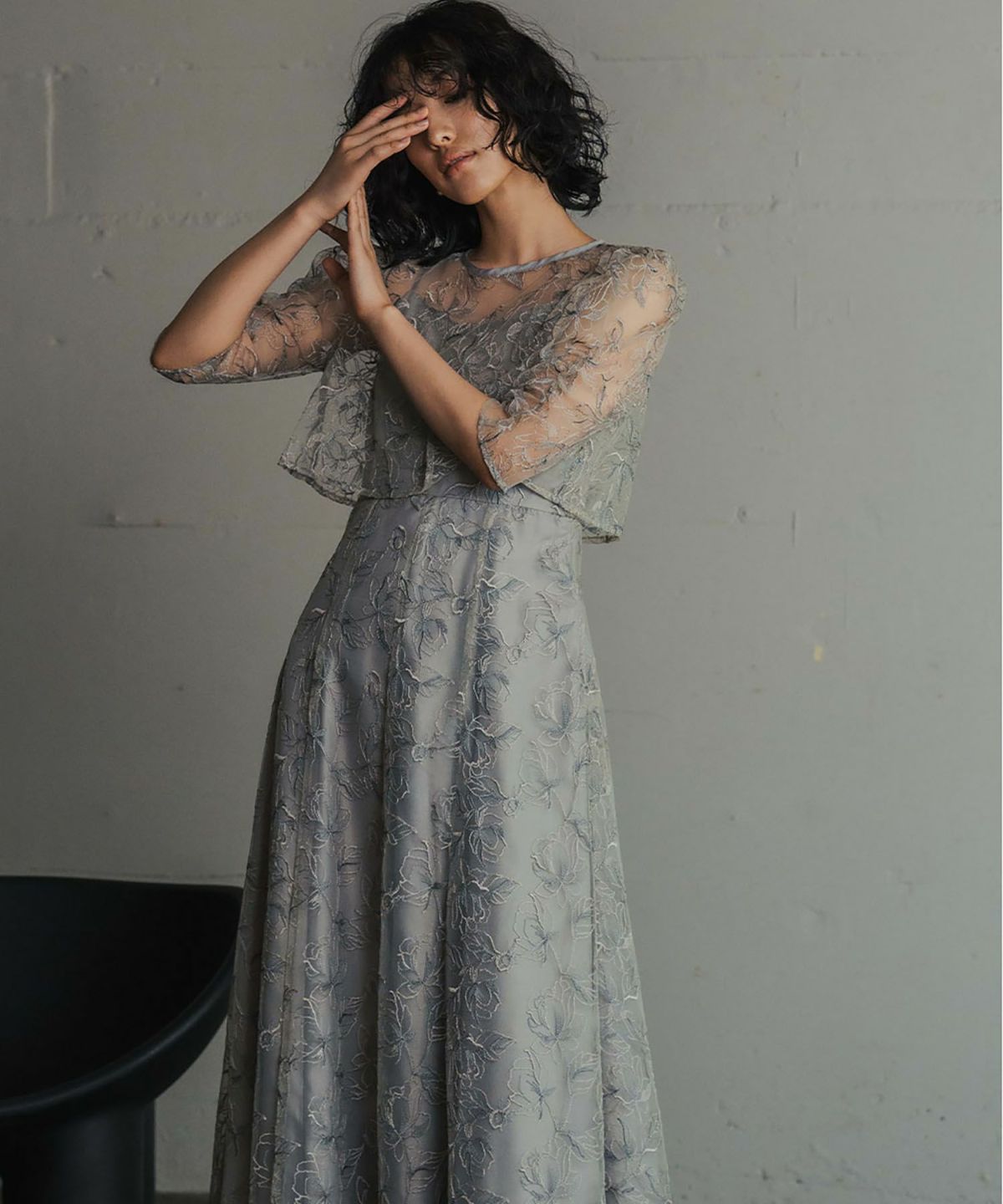 刺繍レースを贅沢に使用したレイヤードドレスです。