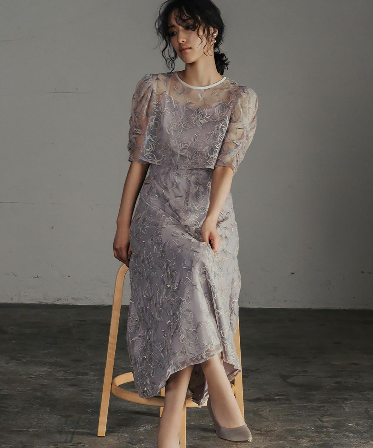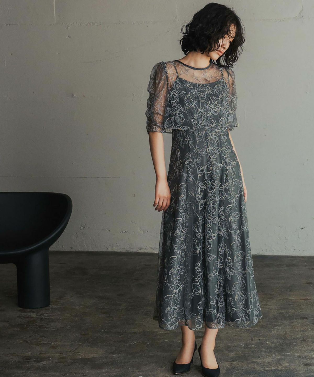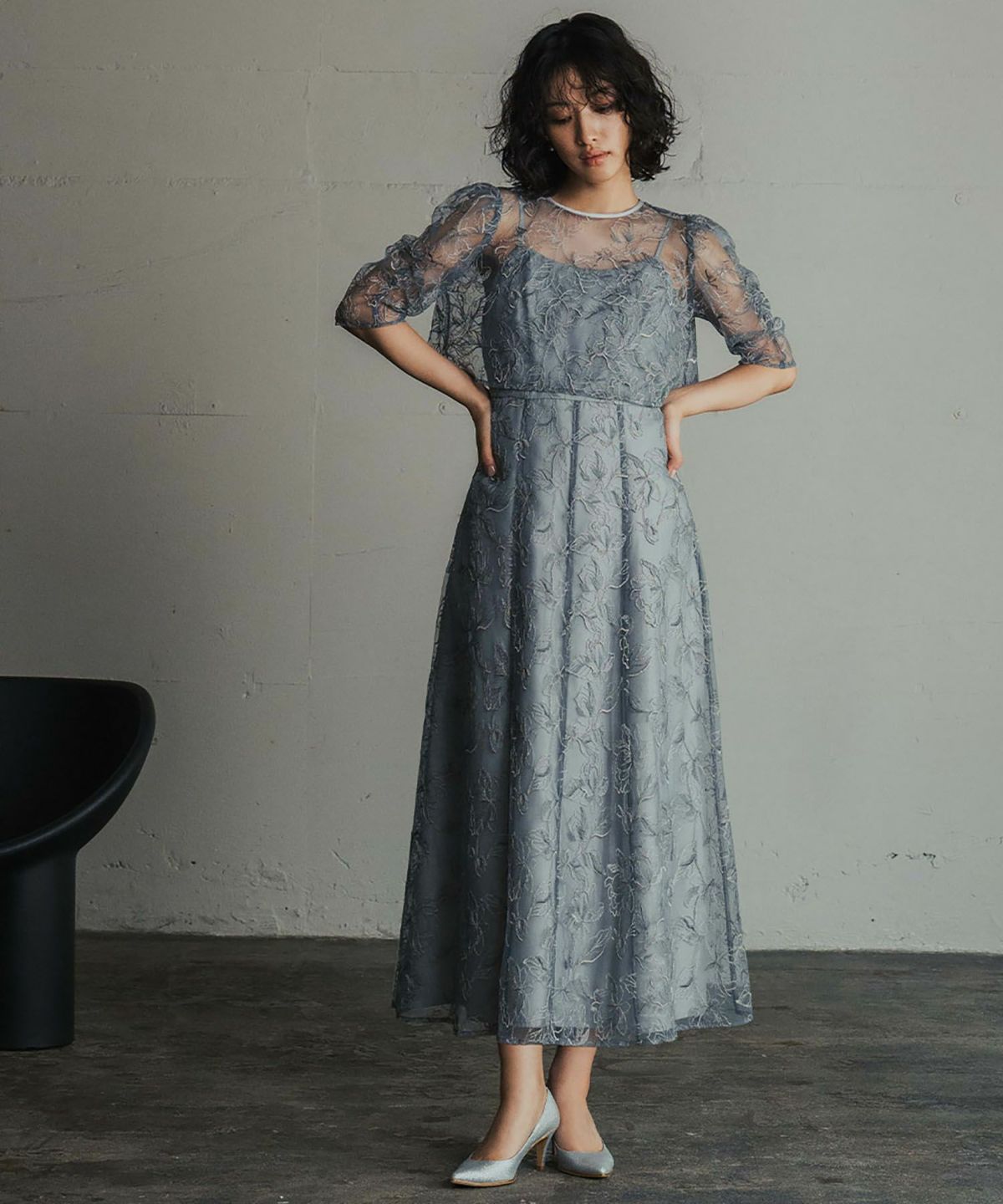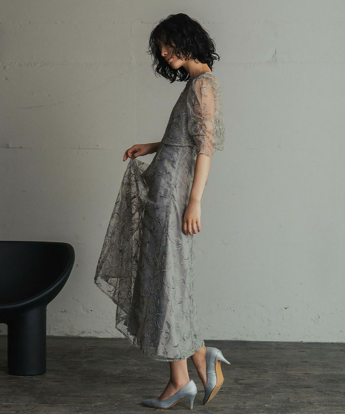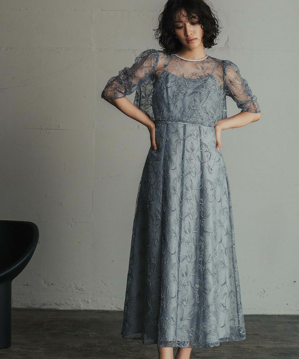 刺繍レースを贅沢に使用したレイヤードドレスです。