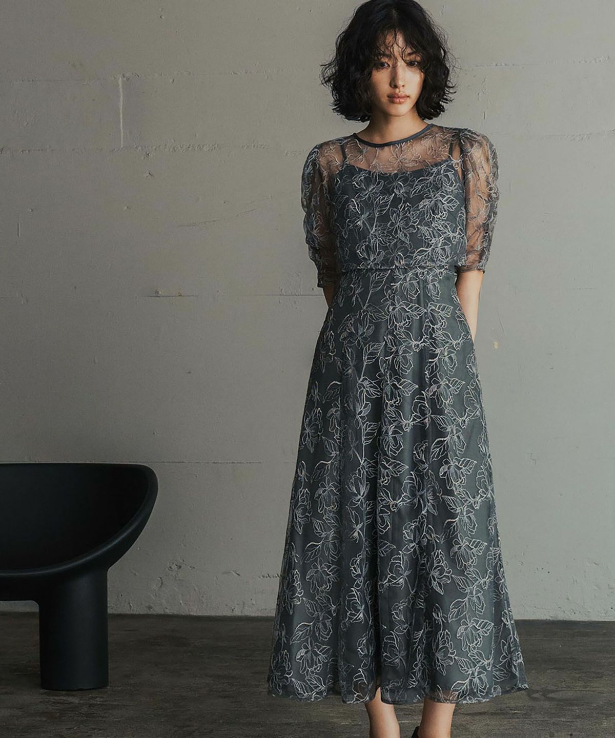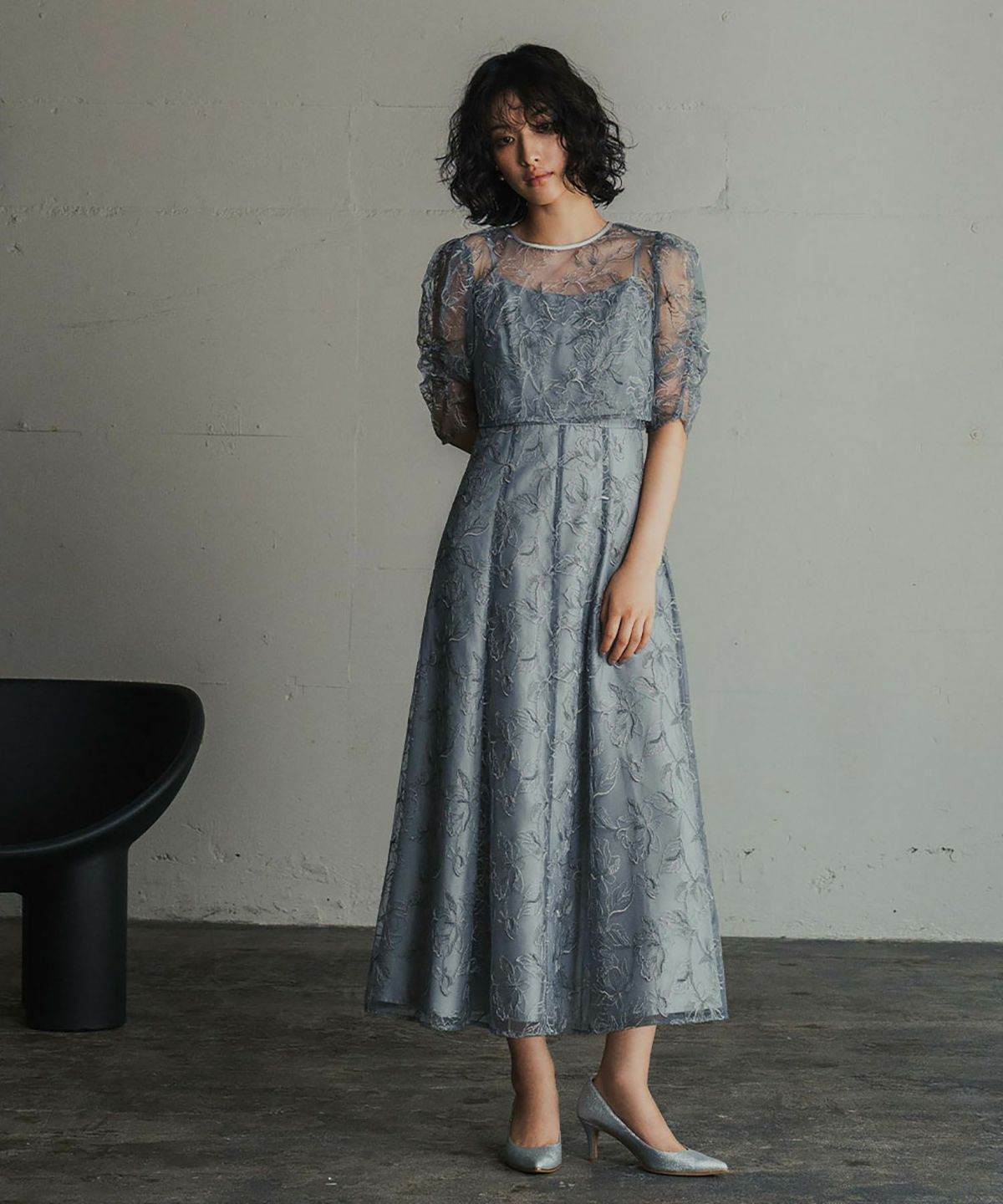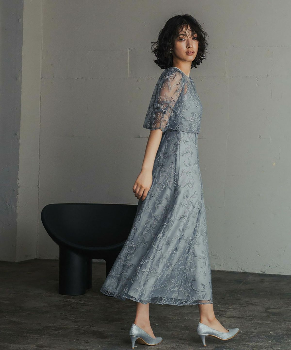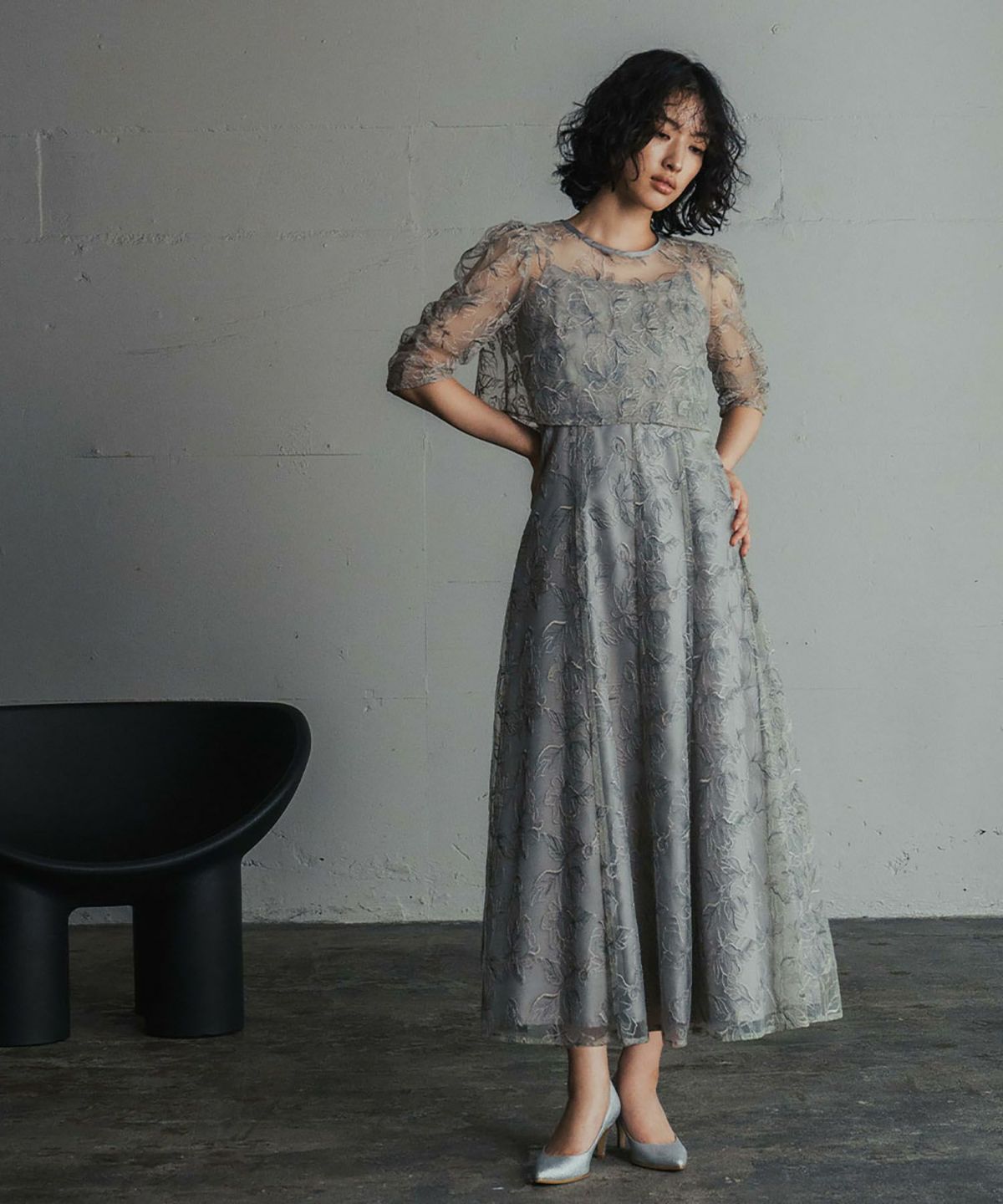 刺繍レースを贅沢に使用したレイヤードドレスです。