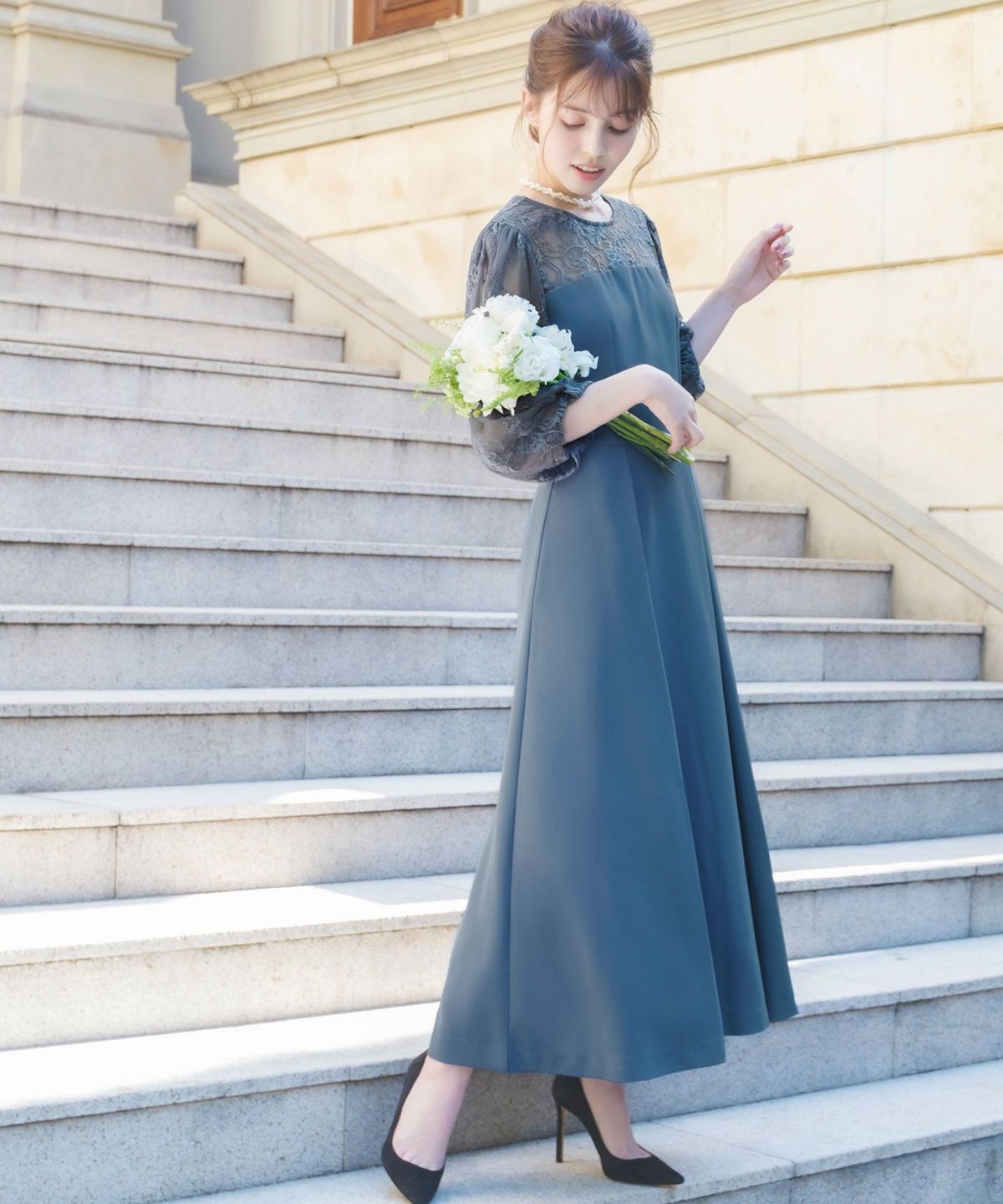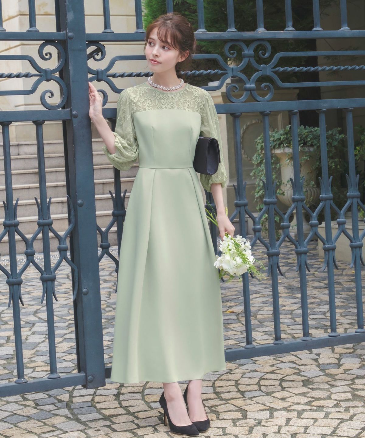 結婚式や二次会、パーティーなどのお呼ばれはもちろん、お食事会や謝恩会まで幅広いシーンで活躍するパーティードレスです。