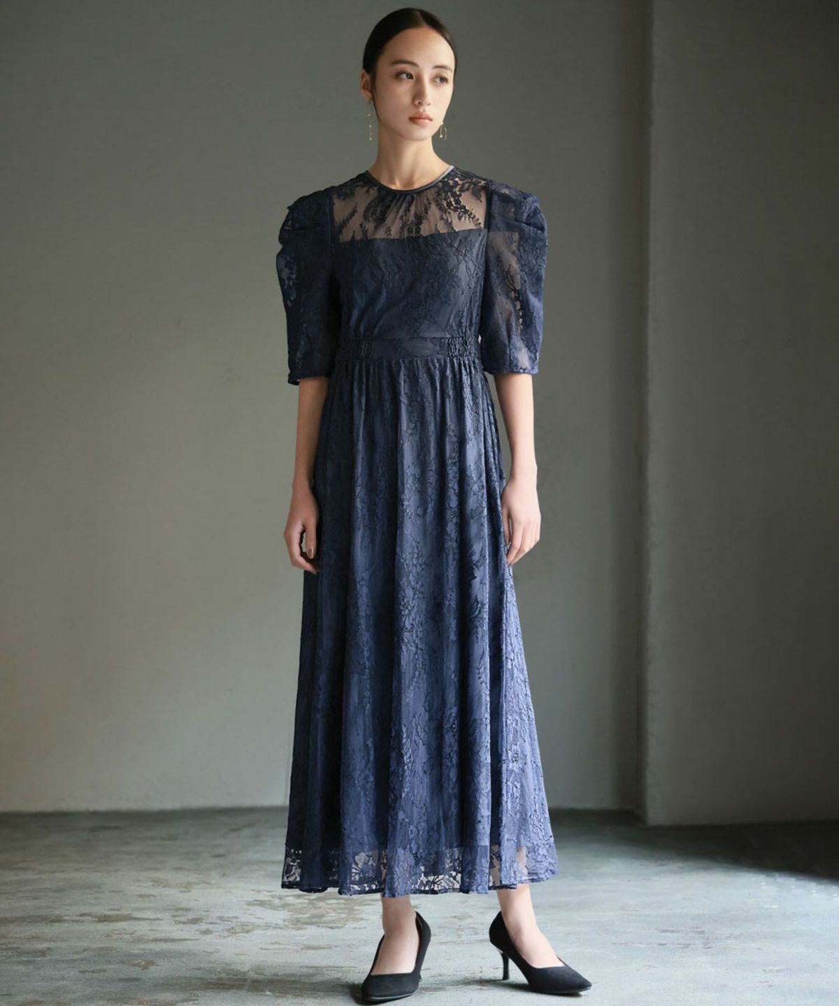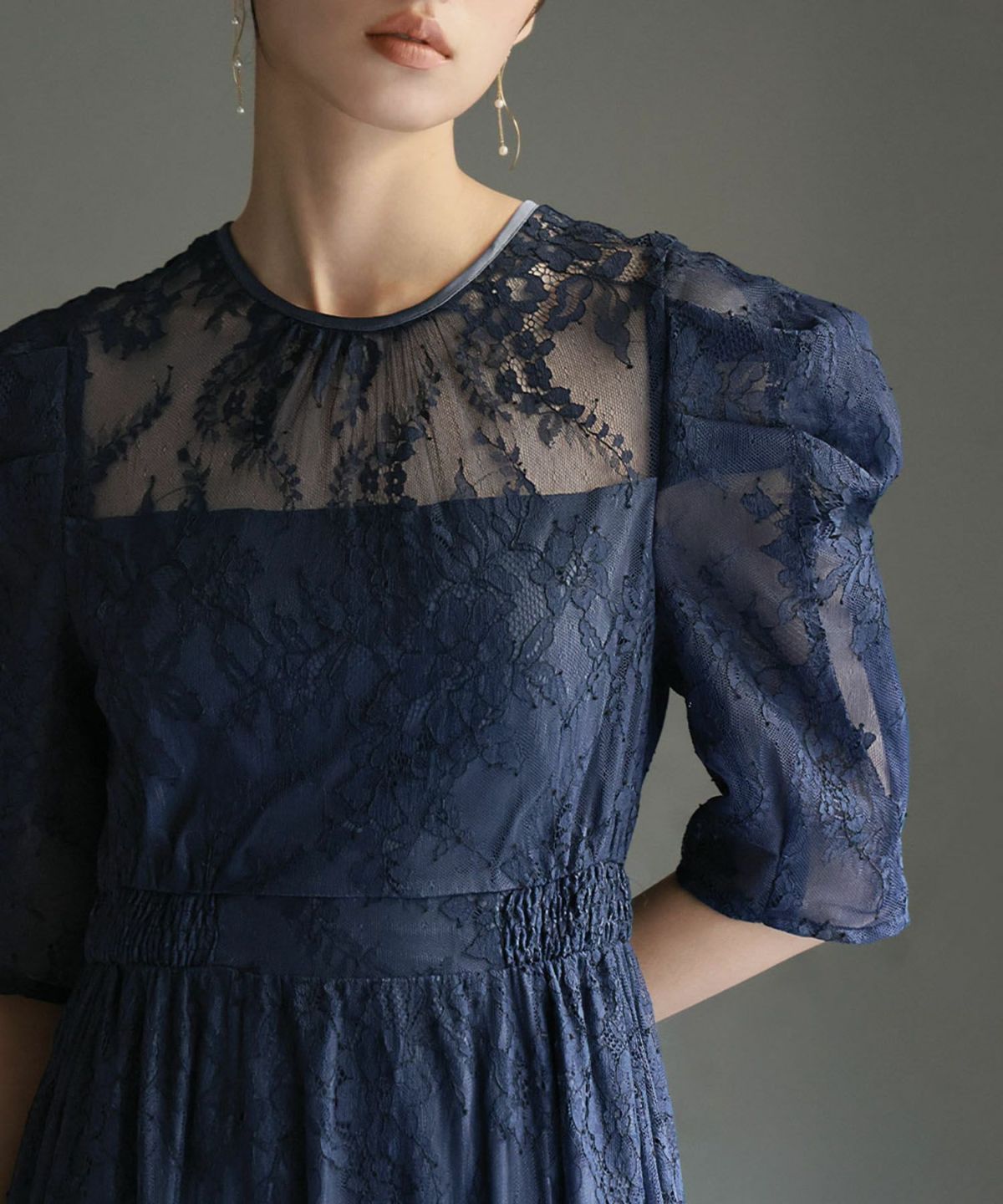 レースの繊細さを残しつつ、袖のフォルムをキープしてくれるデザインとして袖の裏側にオーガンジーを施しています。