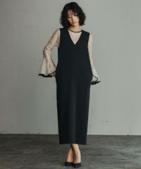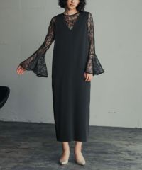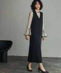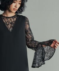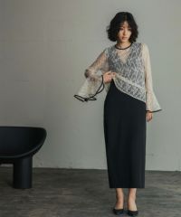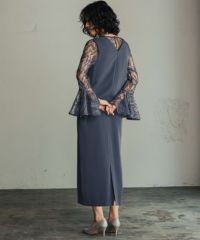 - 【着回しを楽しめる】フレアスリーブレースブラウス&Iラインワンピースセットロング結婚式ワンピースパーティードレス