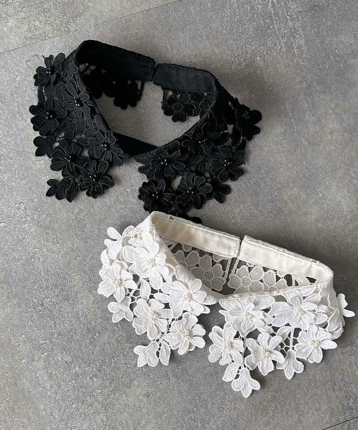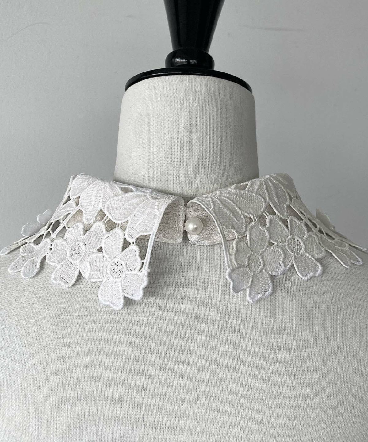 レース襟を取り外すとクルーネックになり、首回りをスッキリと見せてくれます。