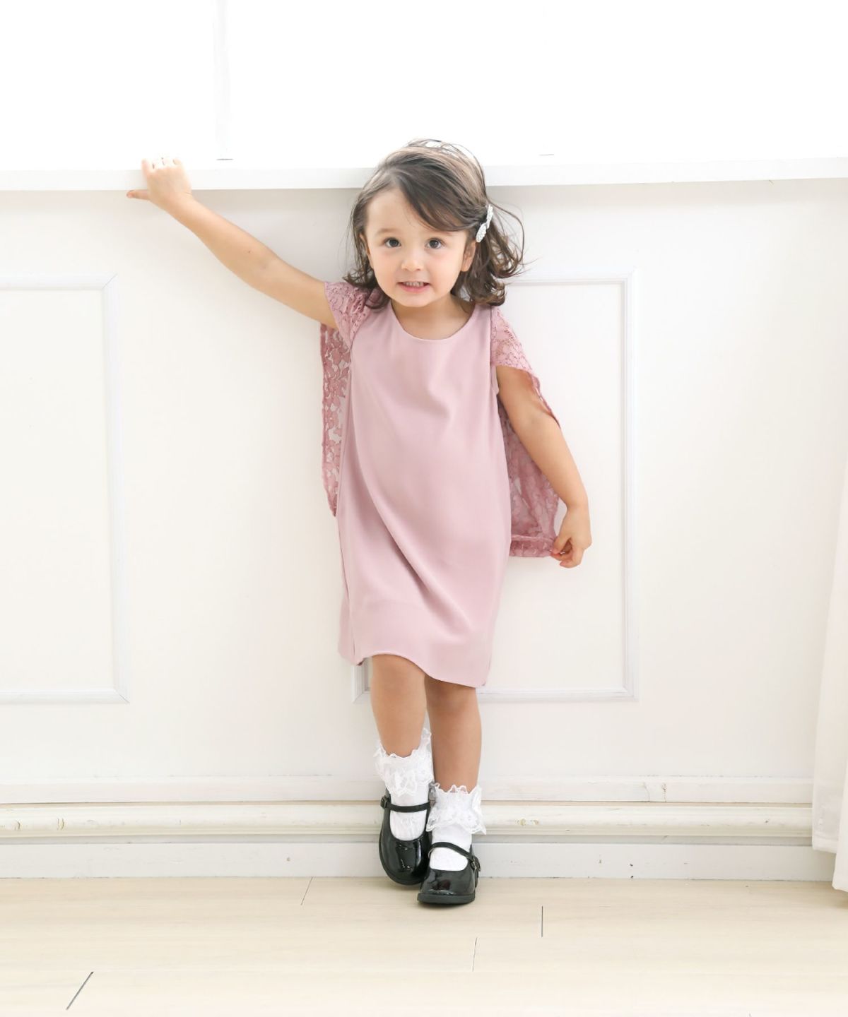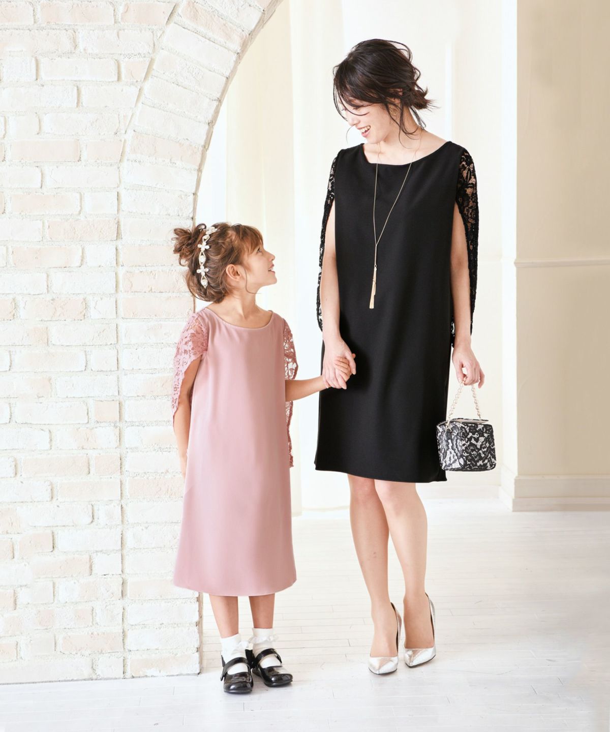 同デザインの大人用ドレスと合わせればフォーマルシーンでママとのおそろいコーデも簡単に実現できるパーティードレスです。
