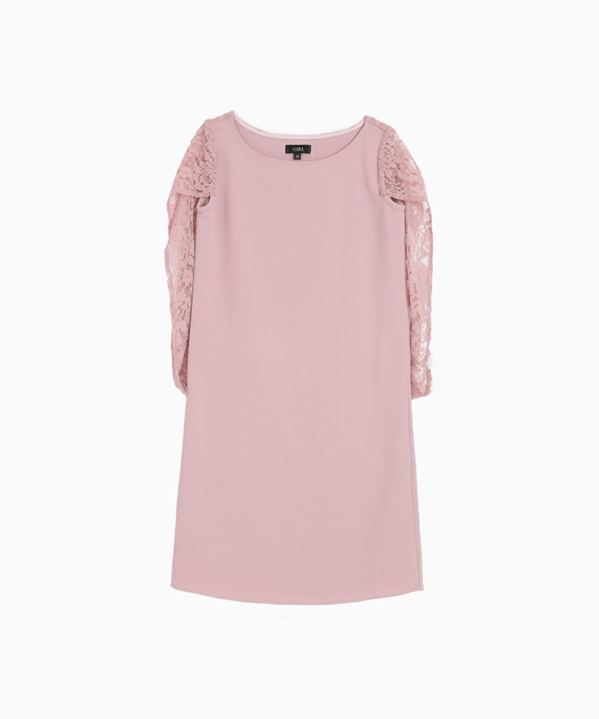 シンプルなIラインのワンピースにレースのケープスリーブを合わせた今らしいデザイン。