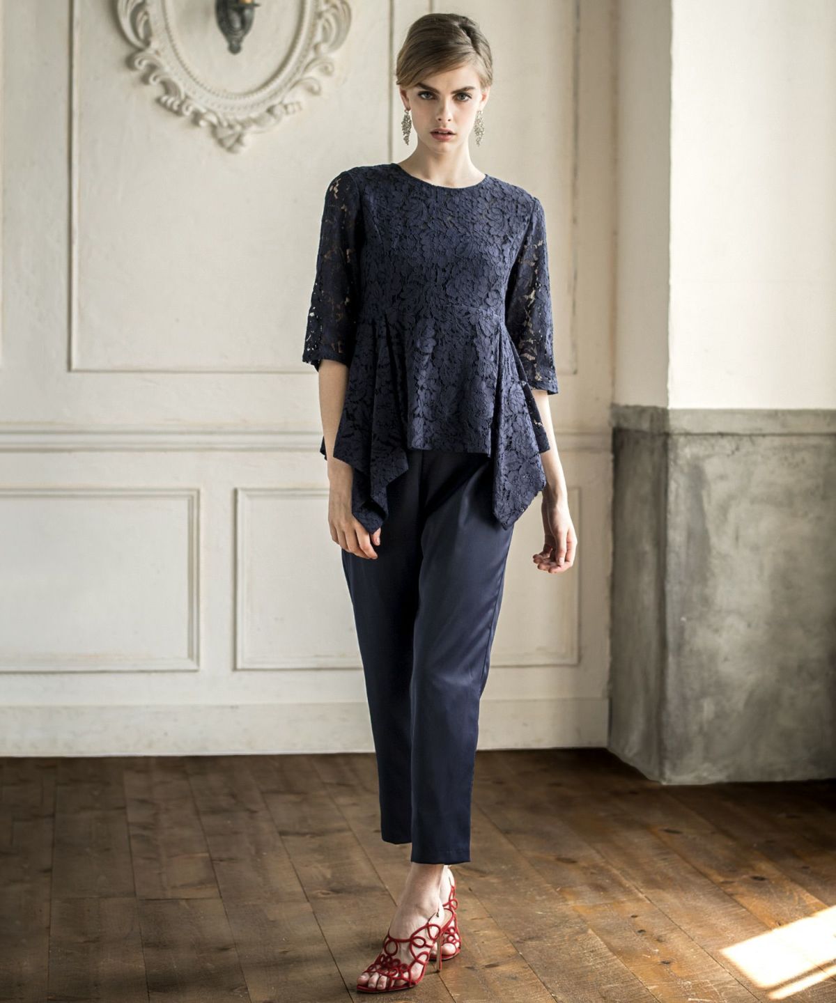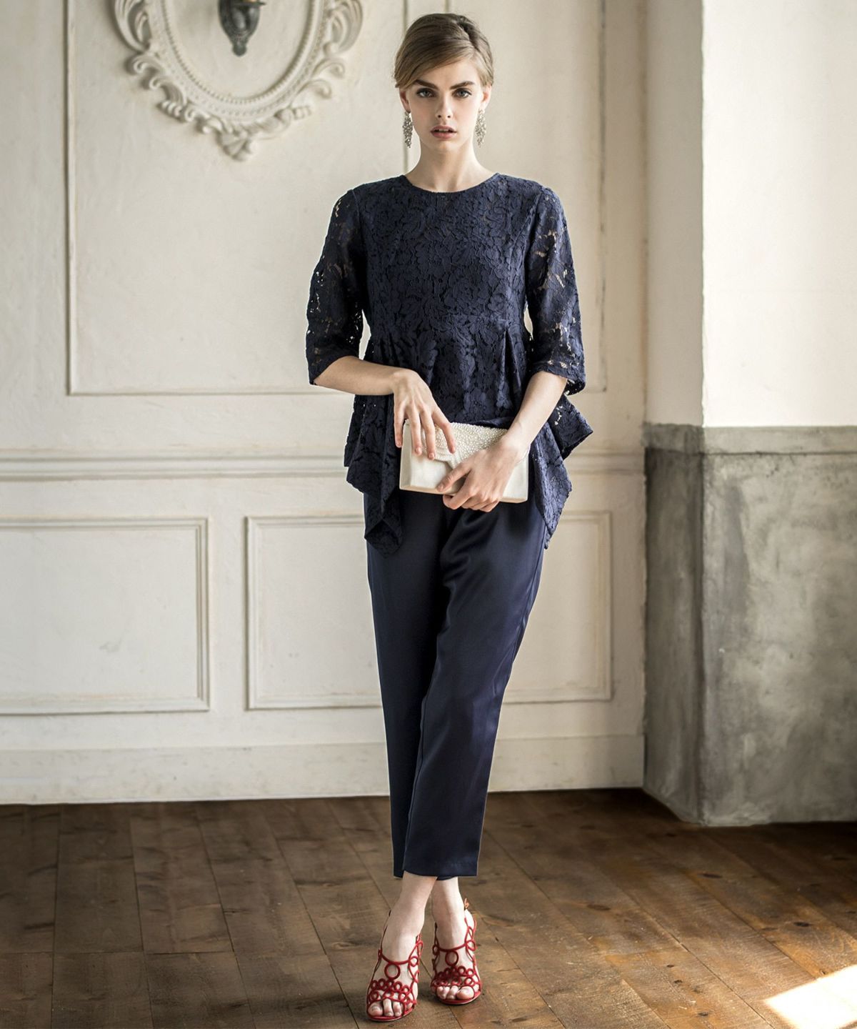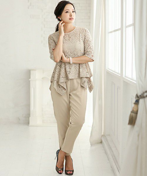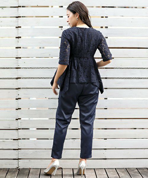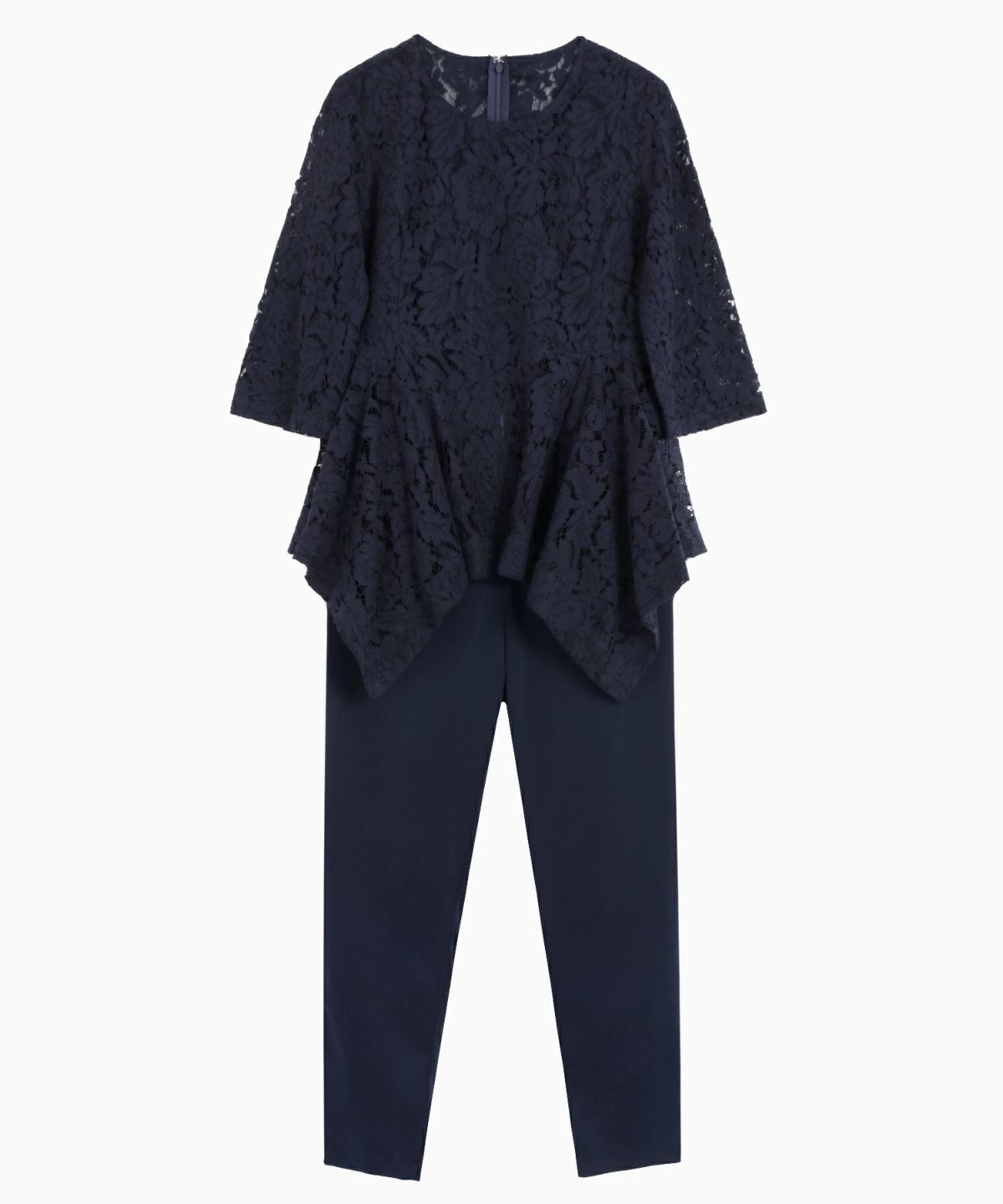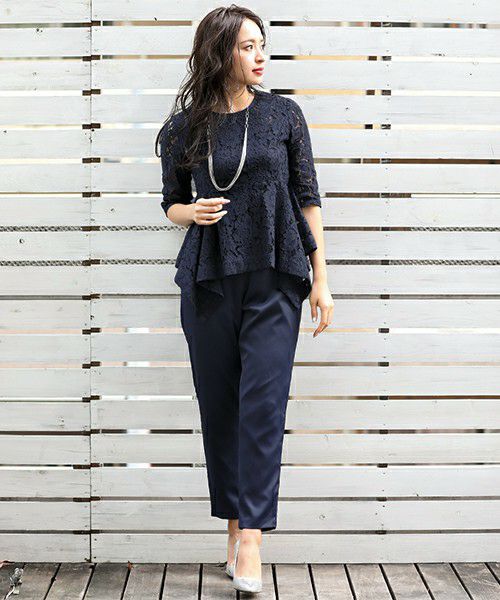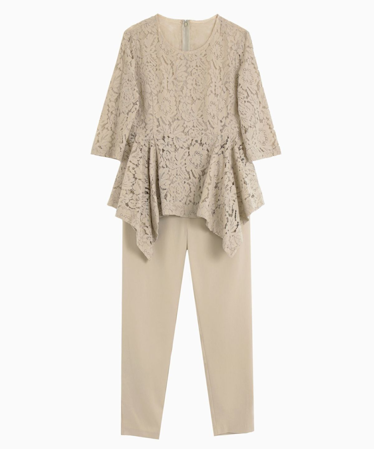 - ペプラムレーストップス&テーパードパンツ2点セットパンツドレス