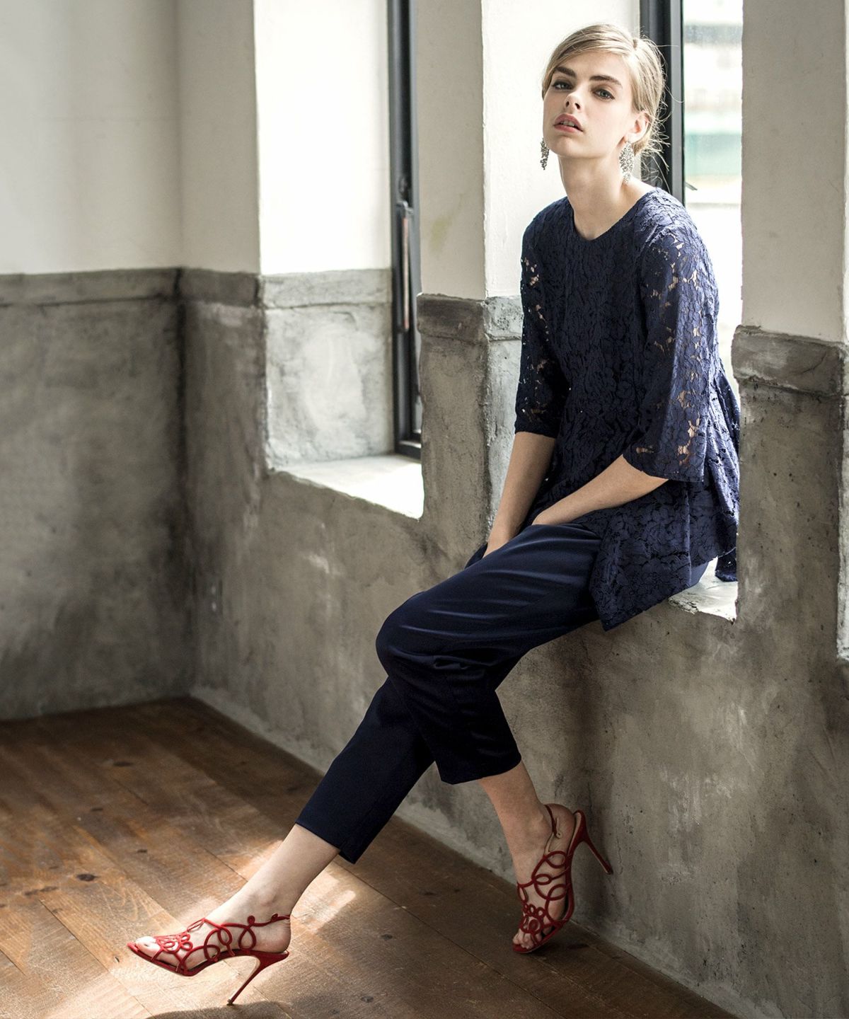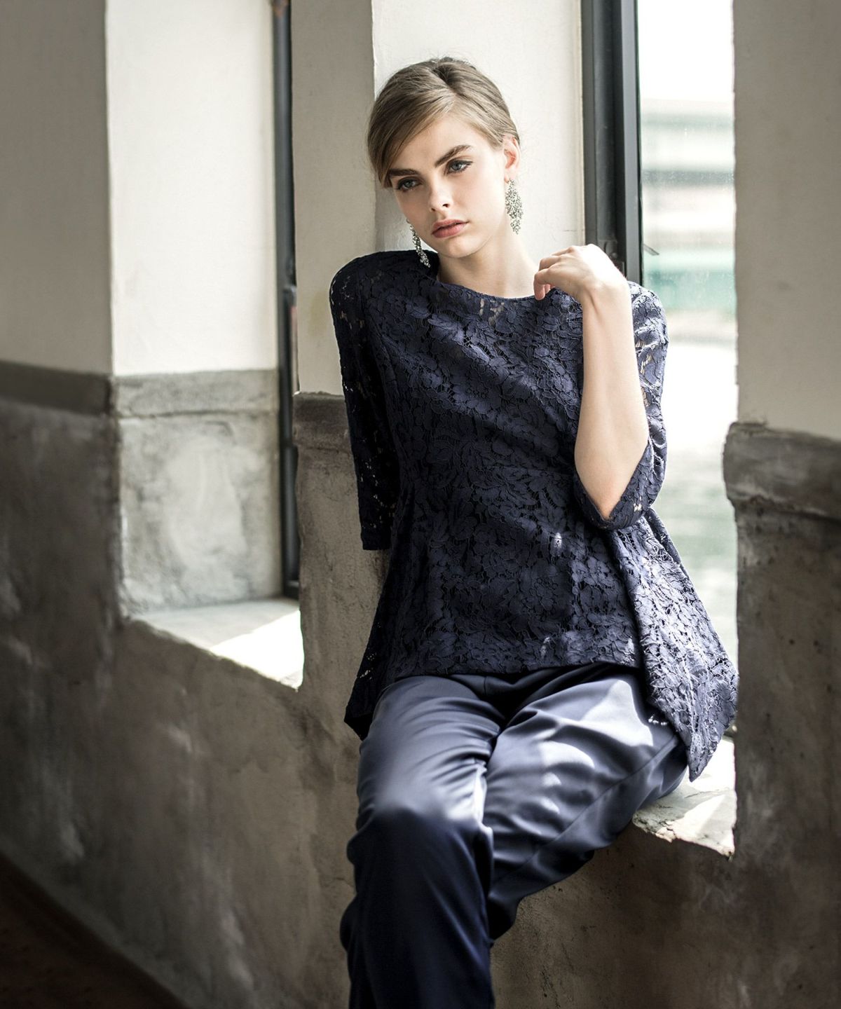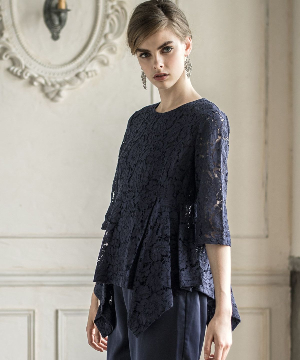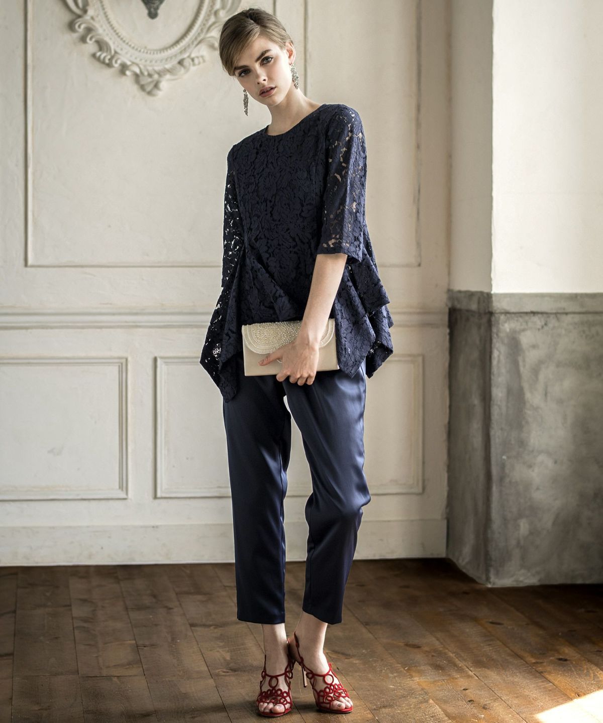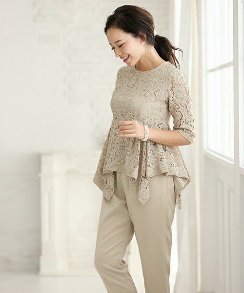- ペプラムレーストップス&テーパードパンツ2点セットパンツドレス