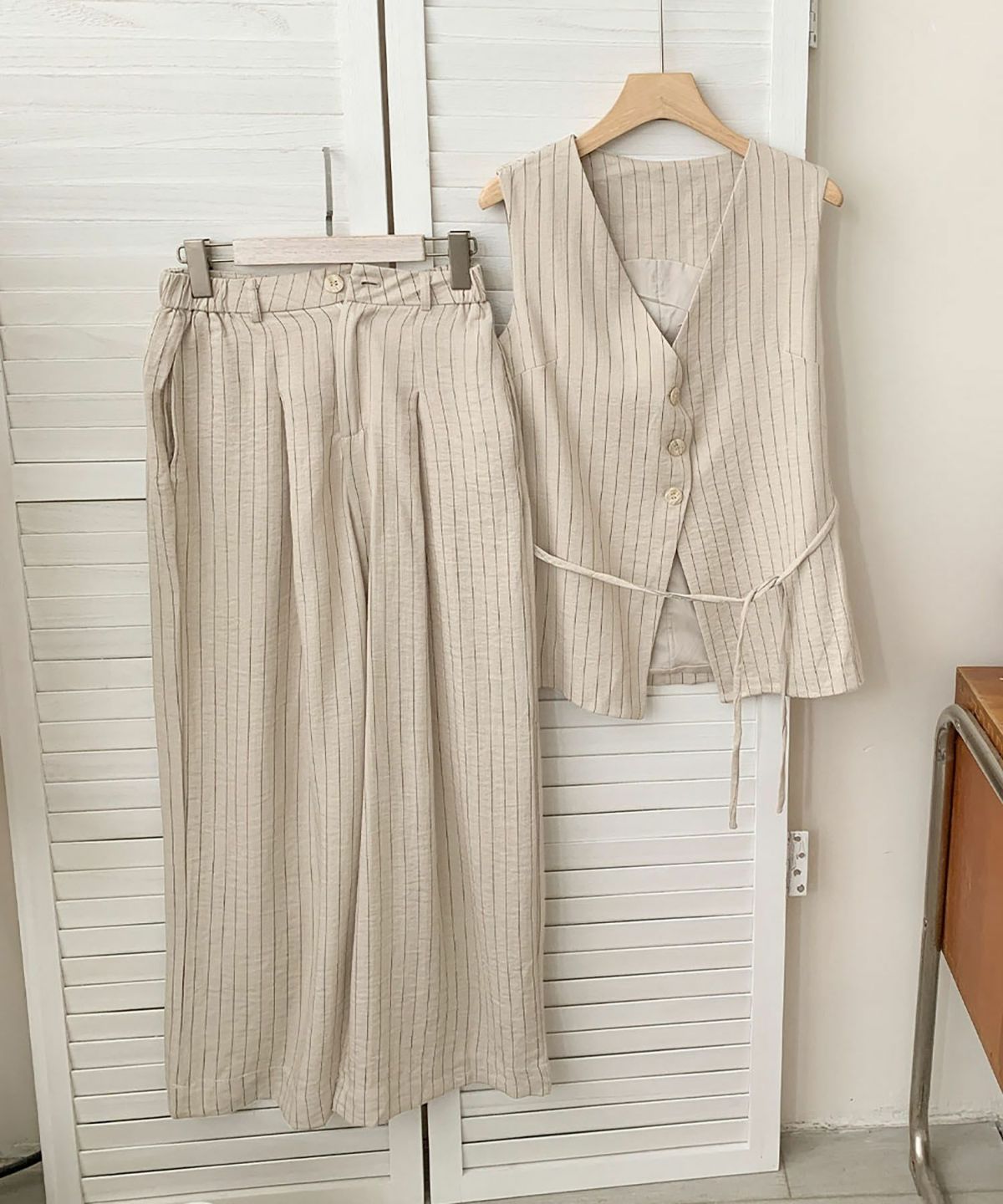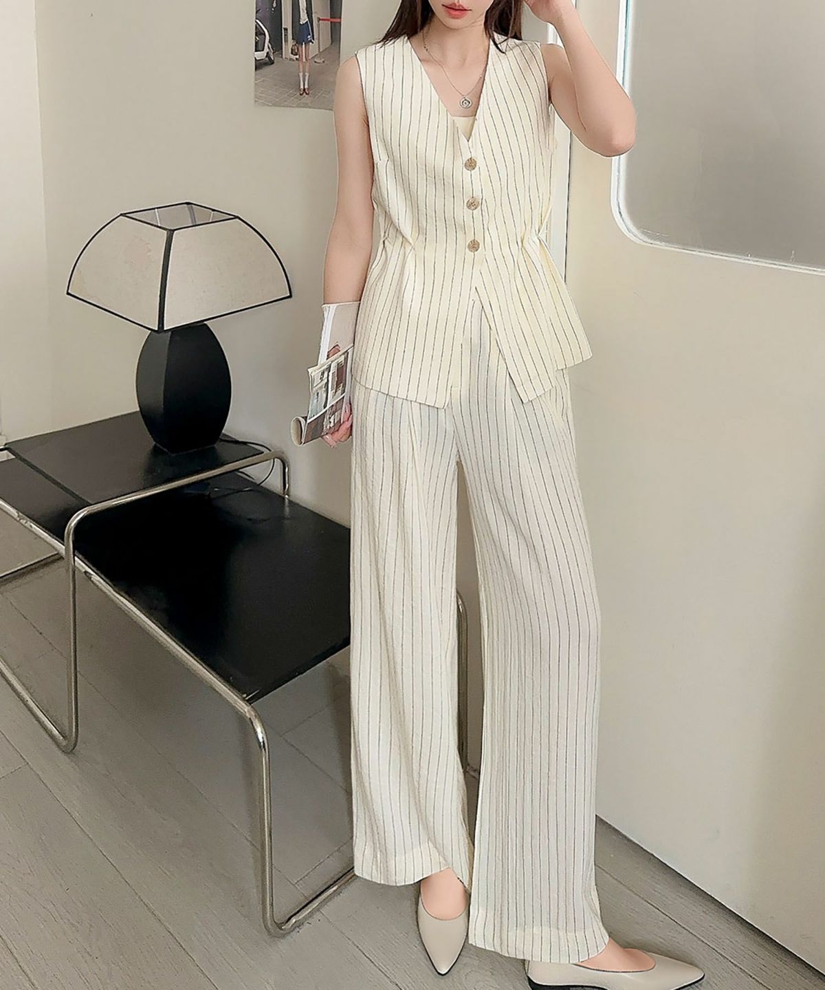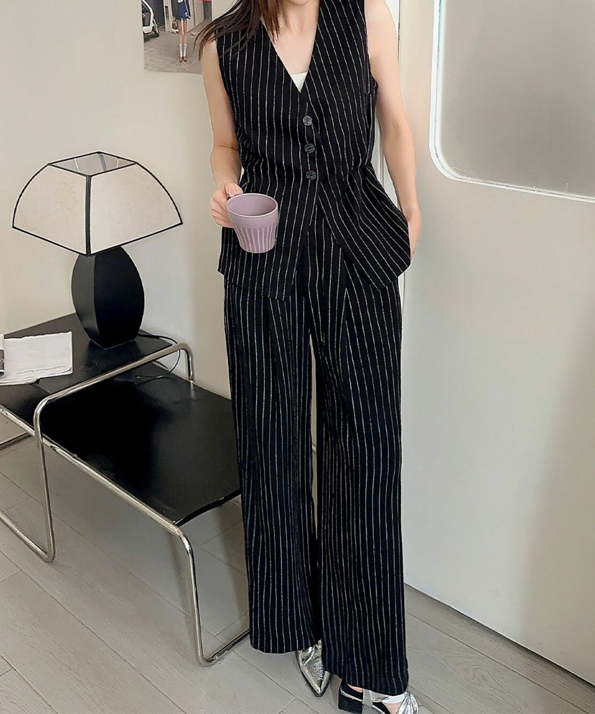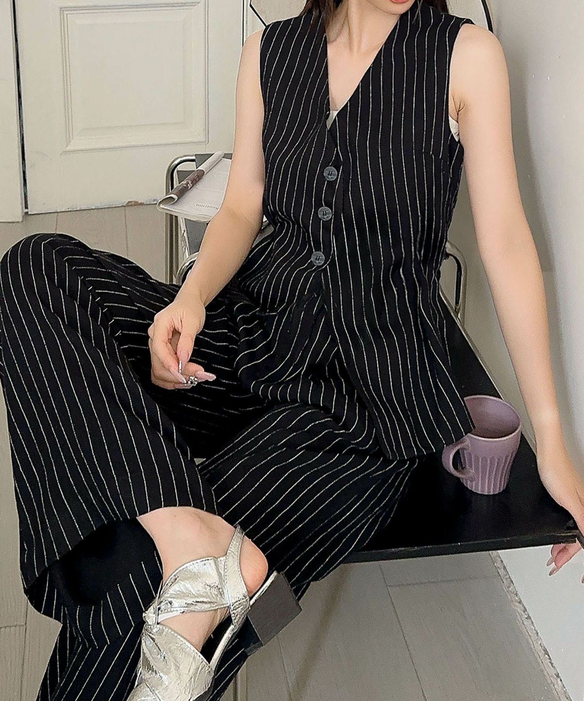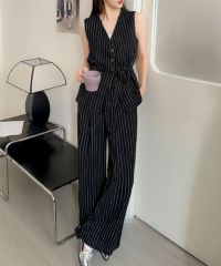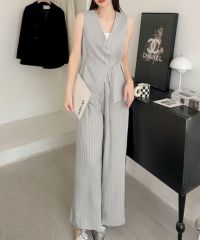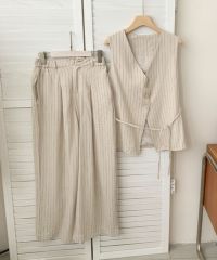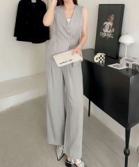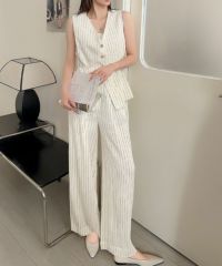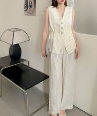 毎日のお仕事スタイルをハンサムかつ洗練された印象にしてくれるジレ+ワイドパンツのセットアップ。