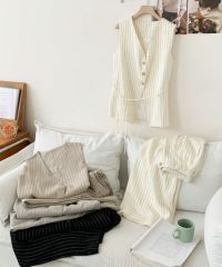 ストライプ柄が縦のラインを強調し、スタイルアップ効果◎。