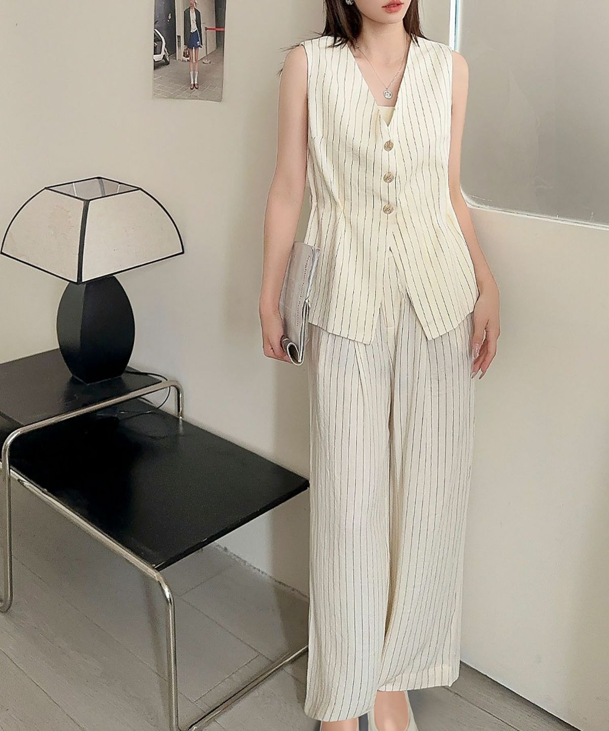 ベストで“きちんと感”を演出しつつ、ワイドパンツの程よい抜け感がこなれた印象に。