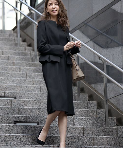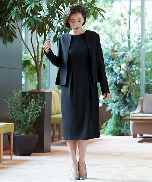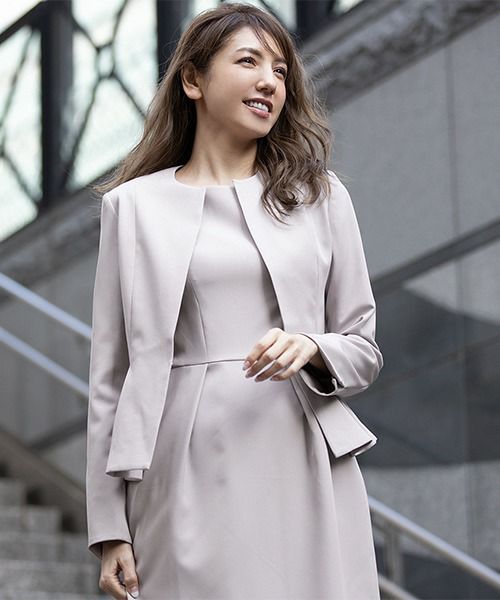- 洗えるノーカラージャケット&コクーンワンピースの2点セットアップセレモニースーツ
