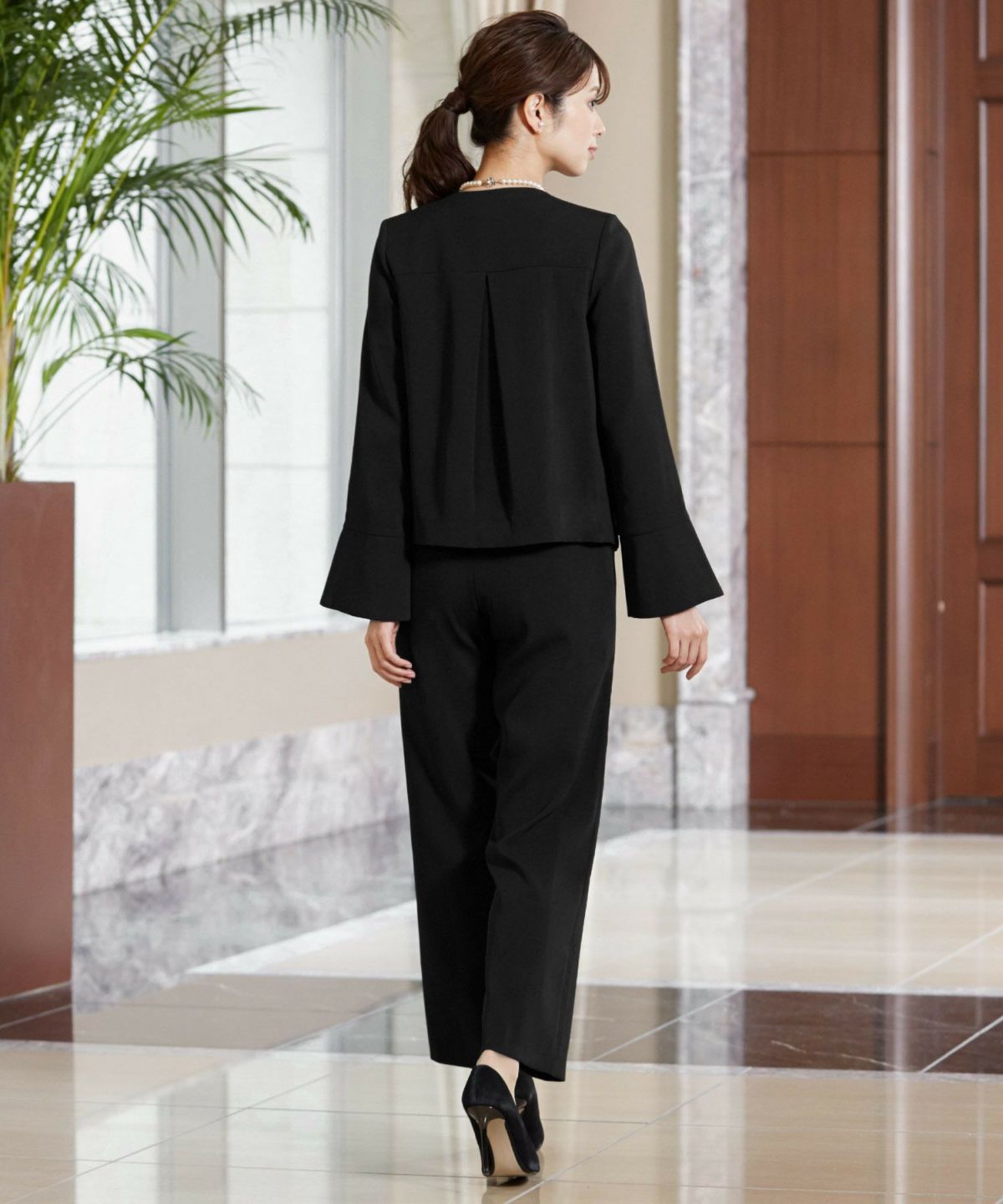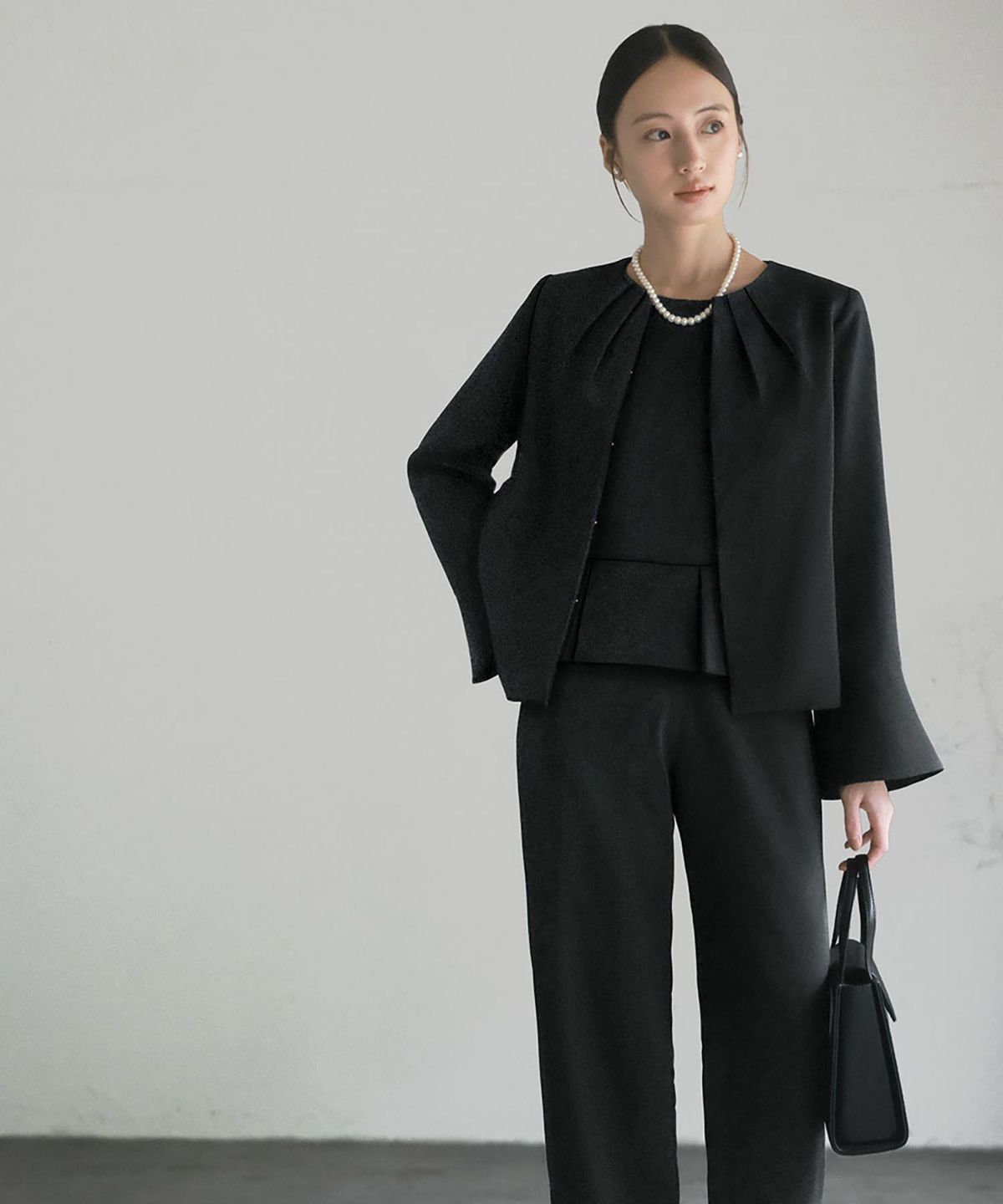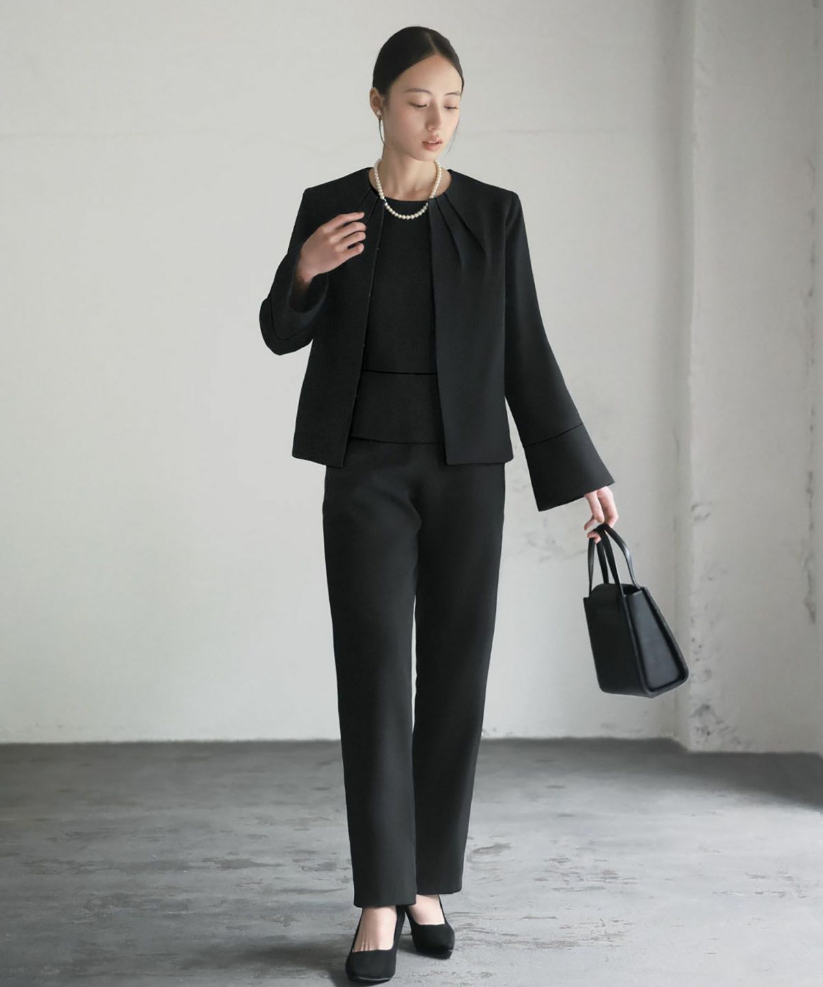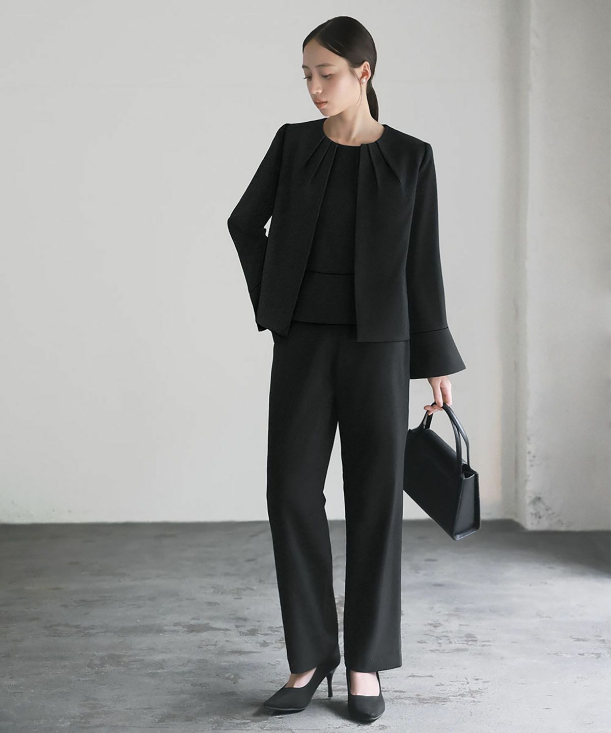 - ノーカラージャケット・ブラウス・パンツの3点セットアップセレモニースーツ