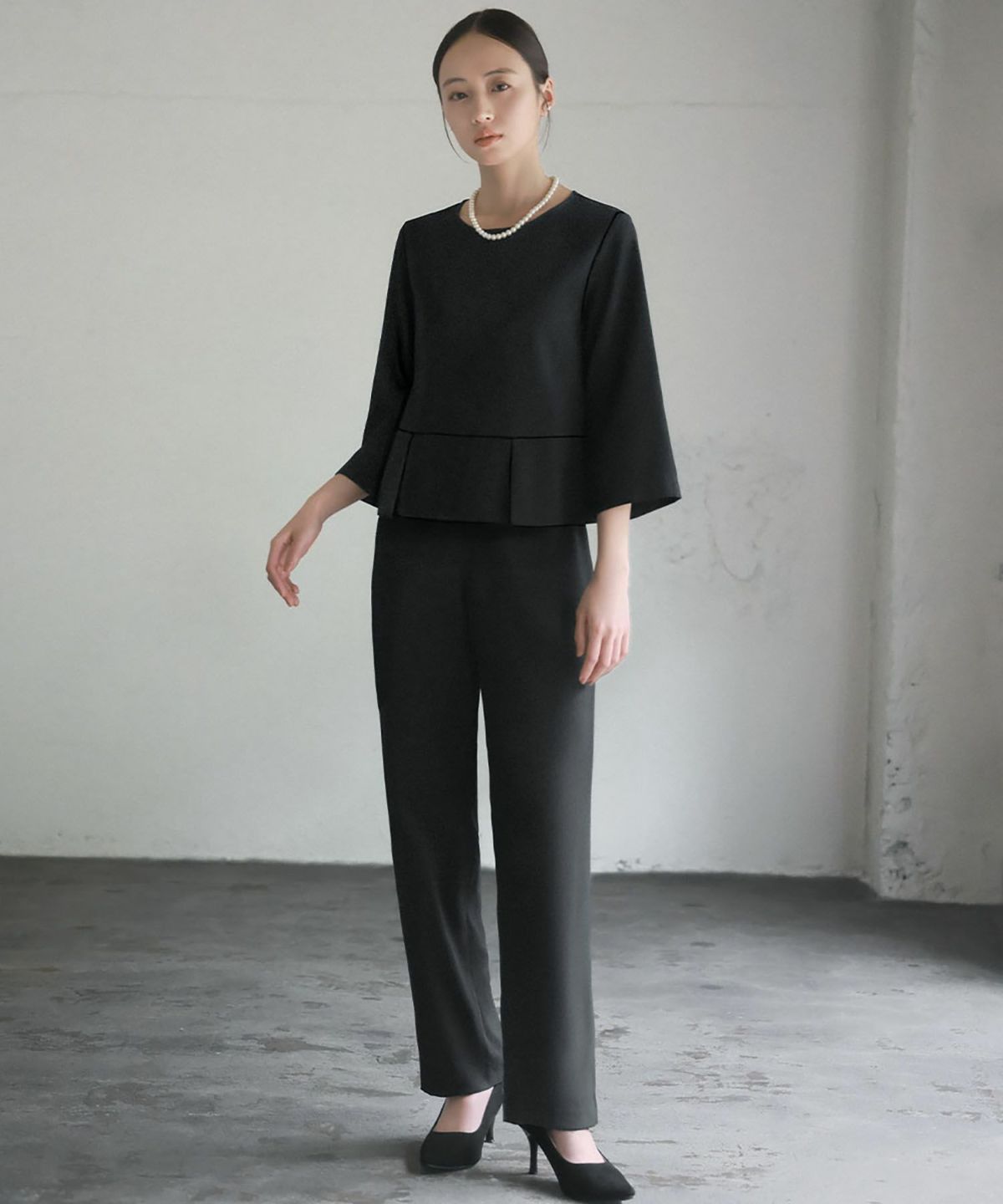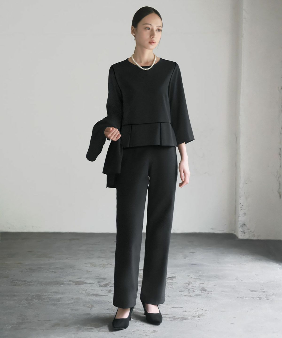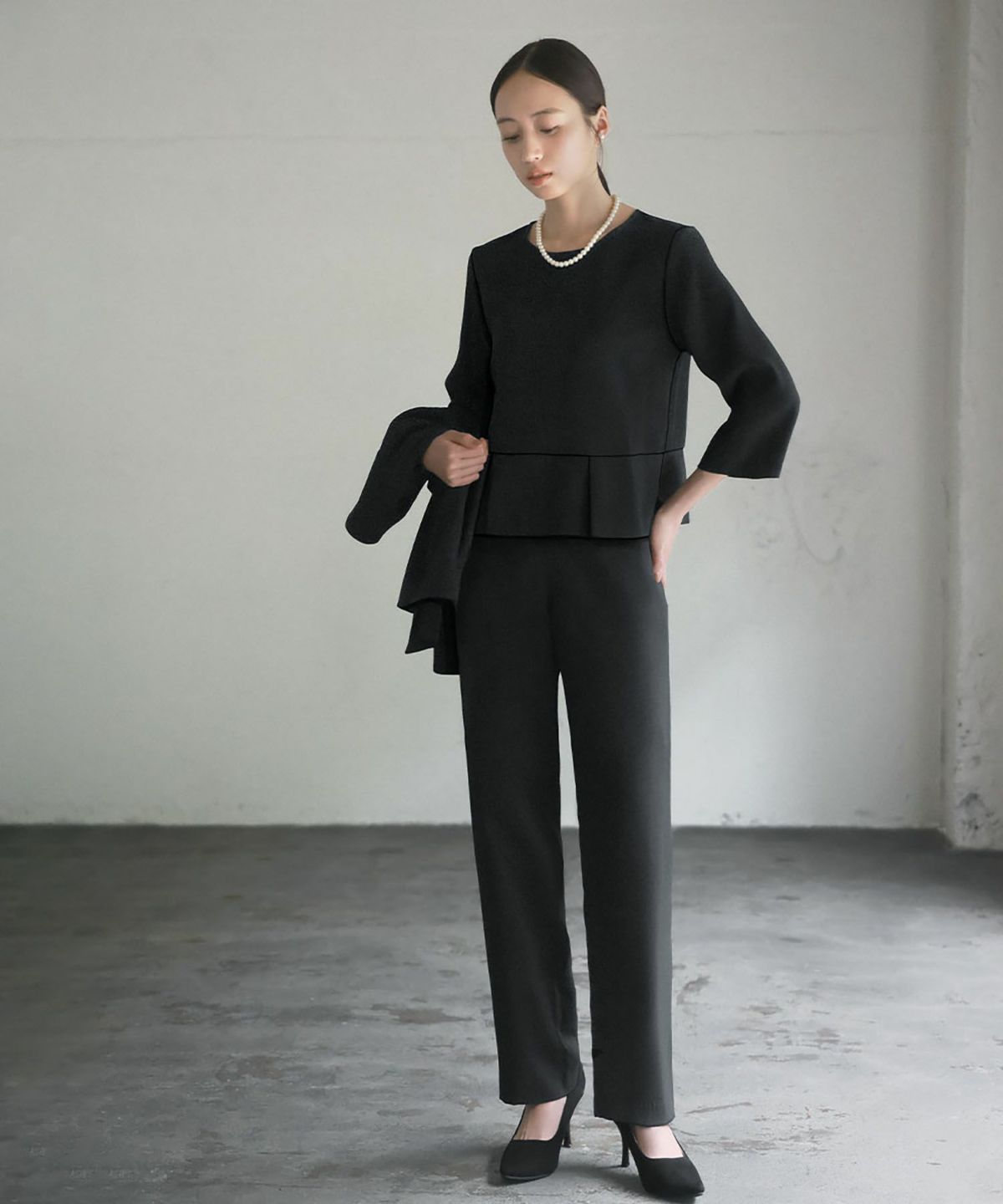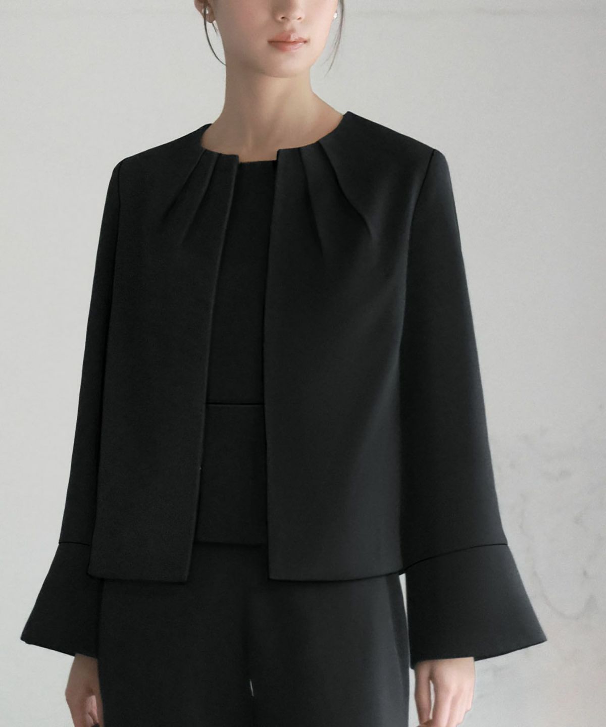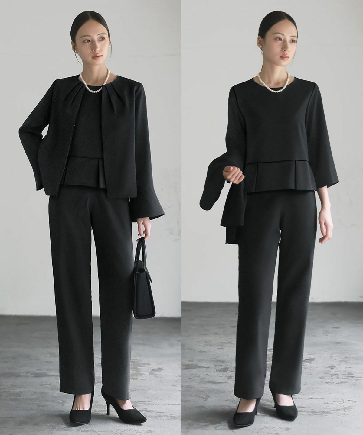 - ノーカラージャケット・ブラウス・パンツの3点セットアップセレモニースーツ