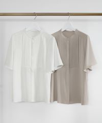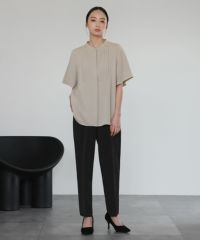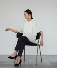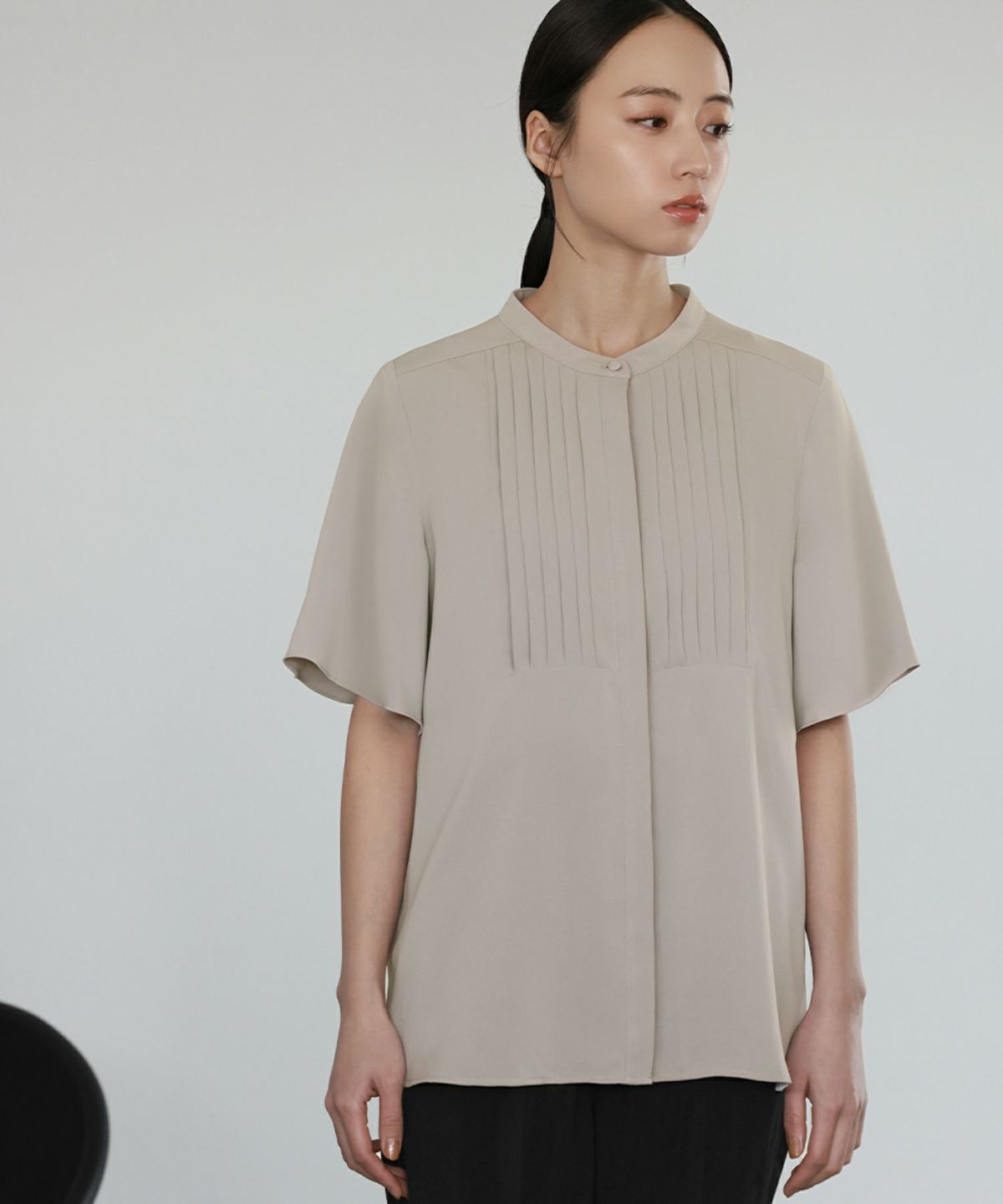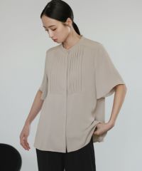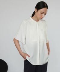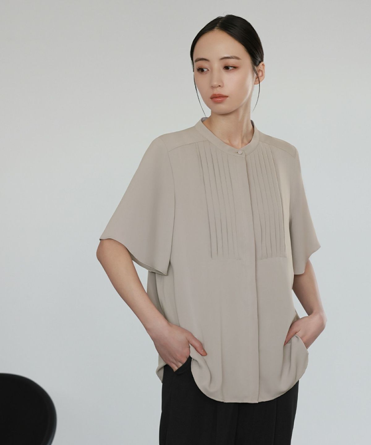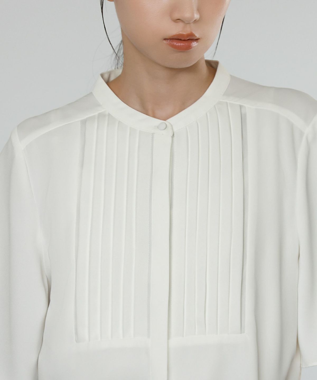 胸元切替にタックを入れたデザインがポイントのブラウス。