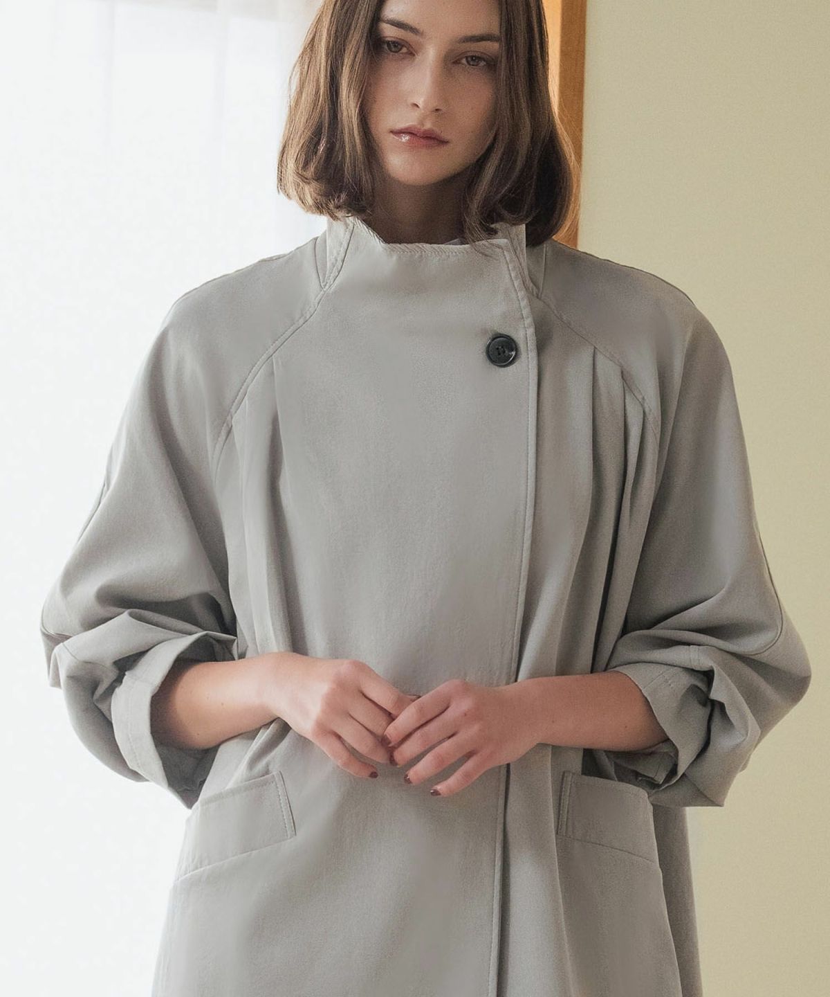 Flolia(フロリア) 洗えるスリットスリーブショート丈ノーカラージャケット