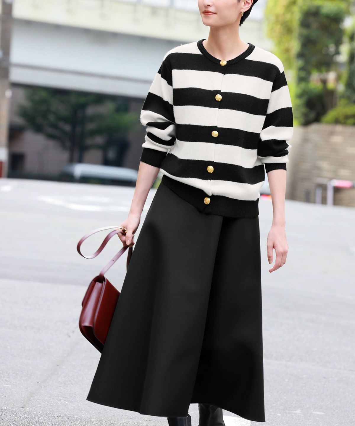 ELFRANK(エルフランク) 【2025AW】【Home washable】上品見えバイカラーVネックカーディガン/立体ケーブル編みで高見え