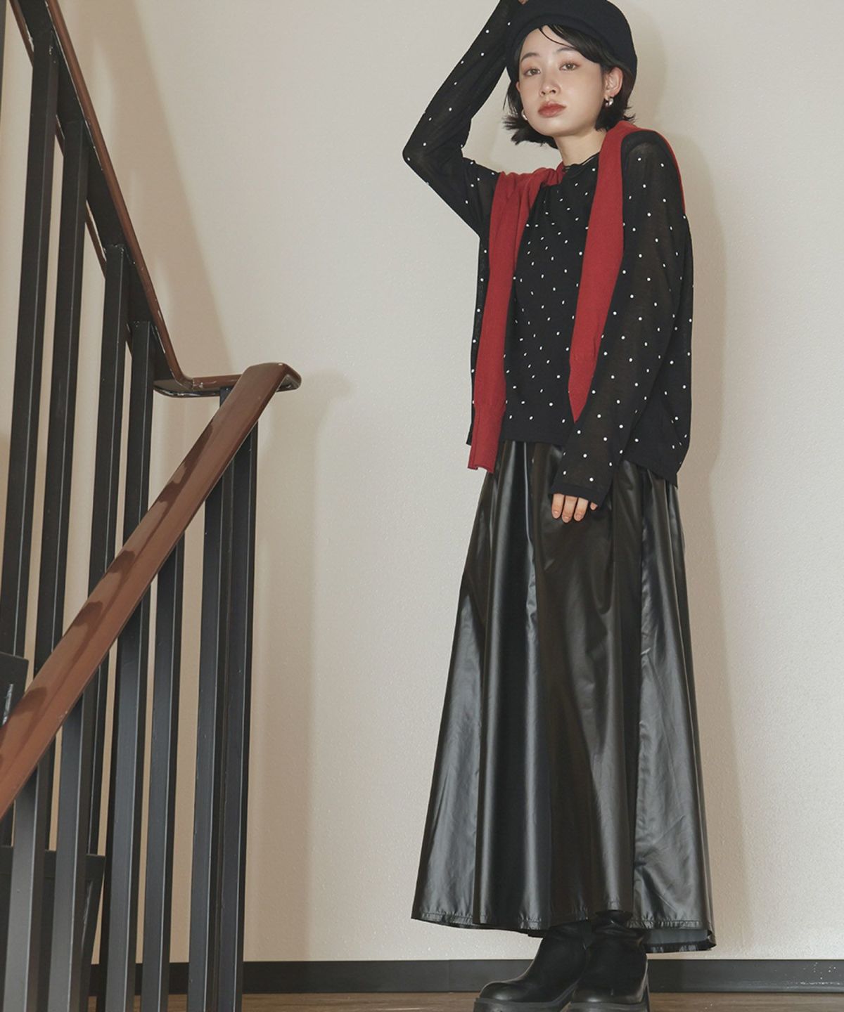 Ampirula(アンピルーラ) 【2025AW】ドットニットプルオーバー&タイトスカート2点セットアップ
