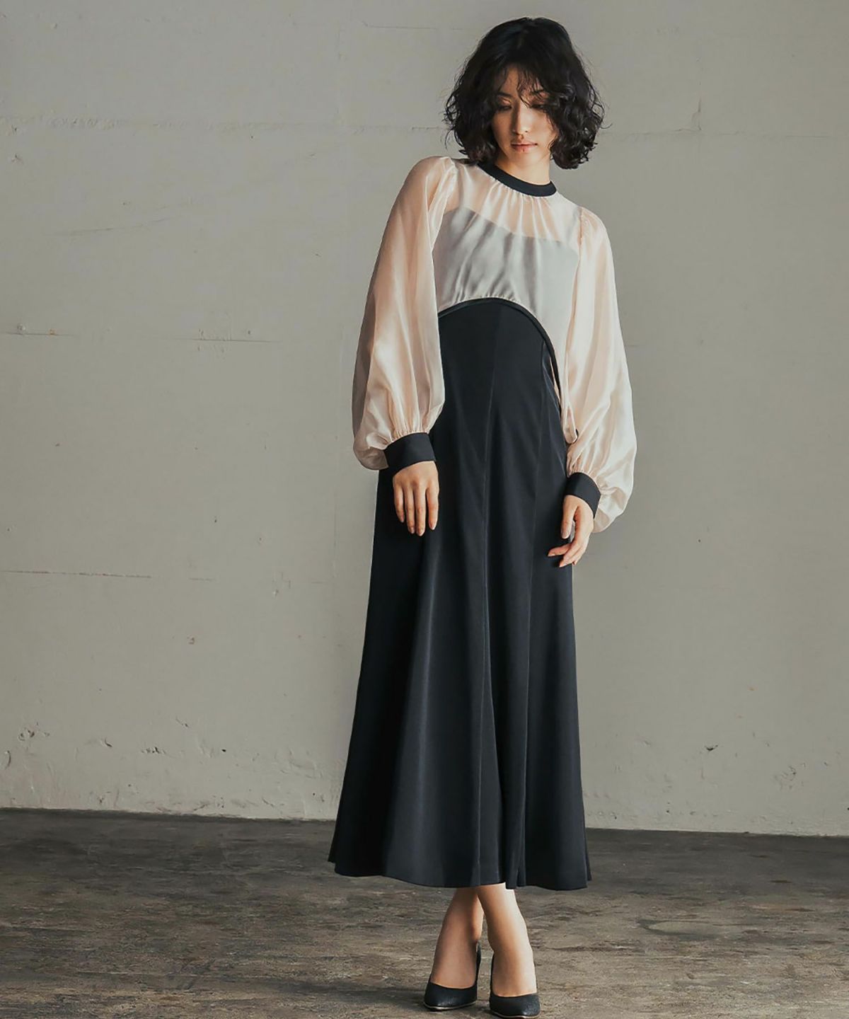 GIRL(ガール) バックリボンシアーショート丈ブラウス&キャミソールワンピースのレイヤードマーメイドロング丈結婚式ワンピースドレス