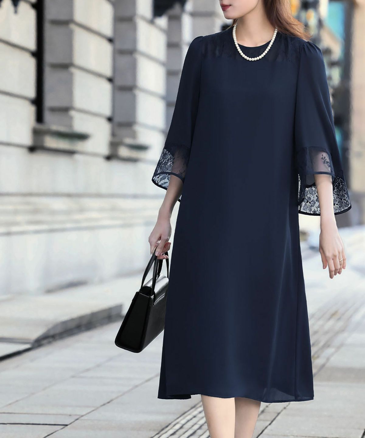 GIRL(ガール) 【低身長さん向け】【~4Lサイズ】コンシャススリーブXラインキーネック結婚式ワンピースドレス