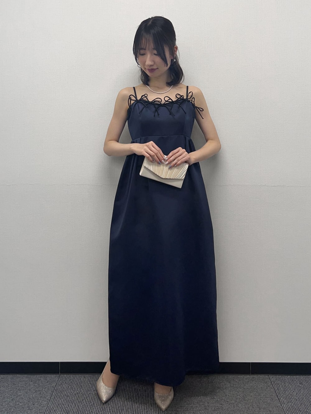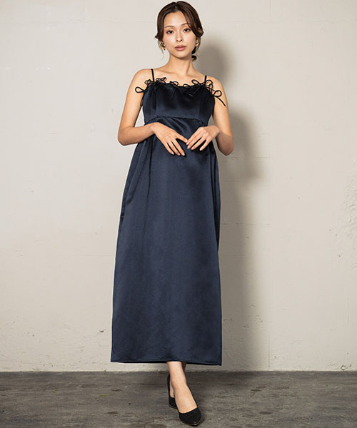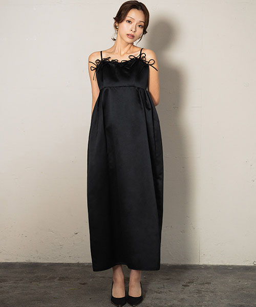 5. 【ANDRESD】リボン×サテンコクーンシルエットキャミソールワンピースパーティードレス