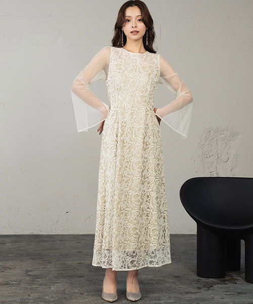 GIRL(ガール) 【ANDRESD】シアースリットスリーブレース刺繍フレアワンピースドレス