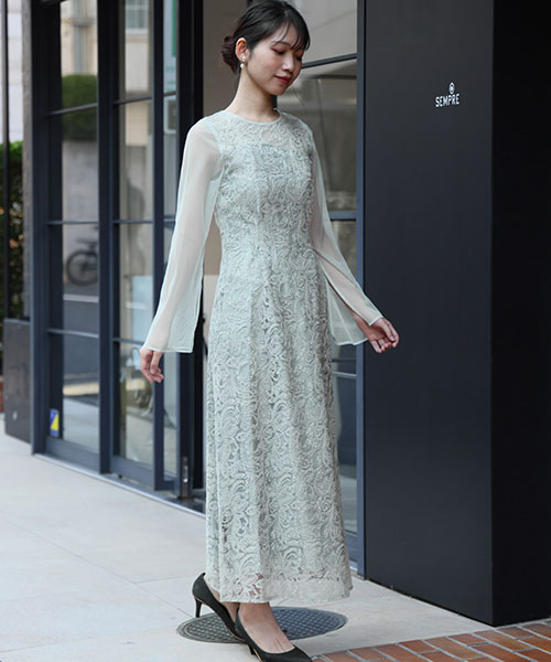 4. 【ANDRESD】シアースリットスリーブレース刺繍フレアワンピースドレス