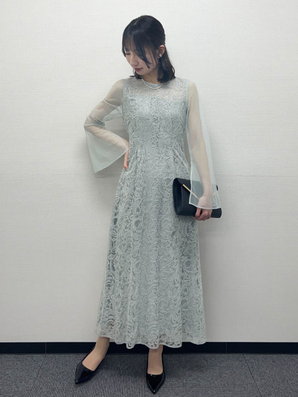 5. 【ANDRESD】シアースリットスリーブレース刺繍フレアワンピースドレス
