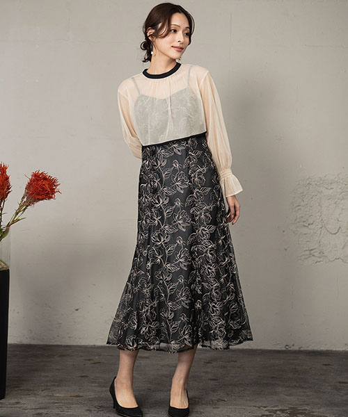 ブラウスは程よく透け感があり、軽やかに着て頂けるチュールを採用。