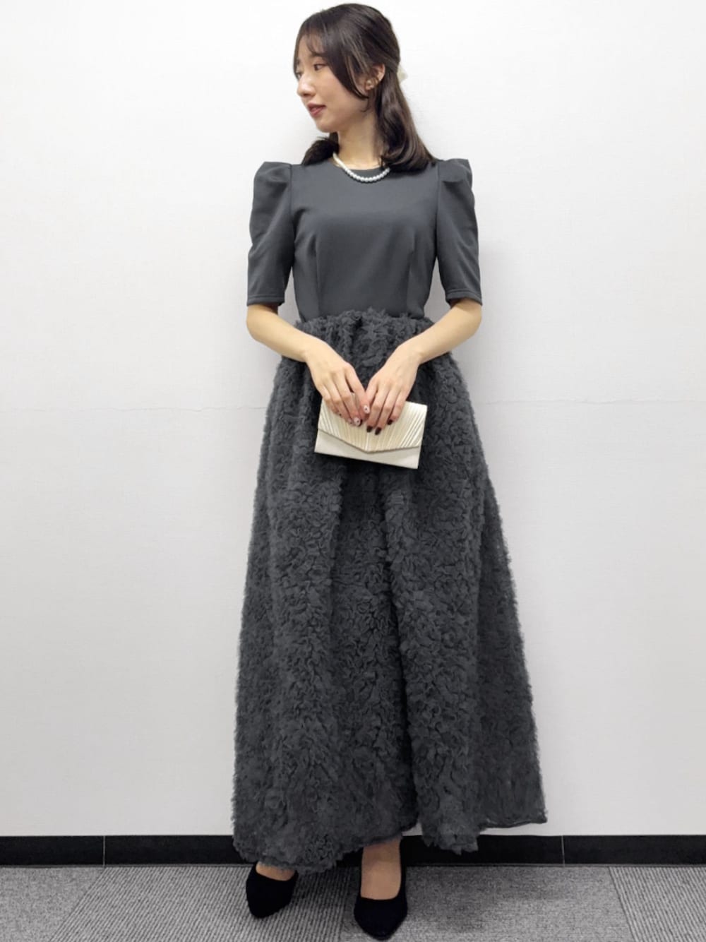 4. 【ANDRESD】パフスリーブトップス&ボリュームスカートセットアップパーティードレス