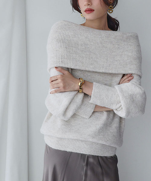 ELFRANK(エルフランク) オフショルダーメランジニットプルオーバー