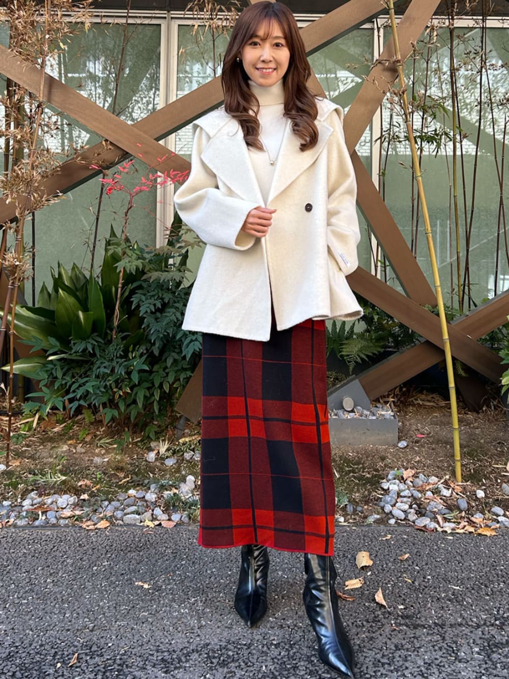 大胆に入ったチェック柄が秋冬コーデのポイントに。