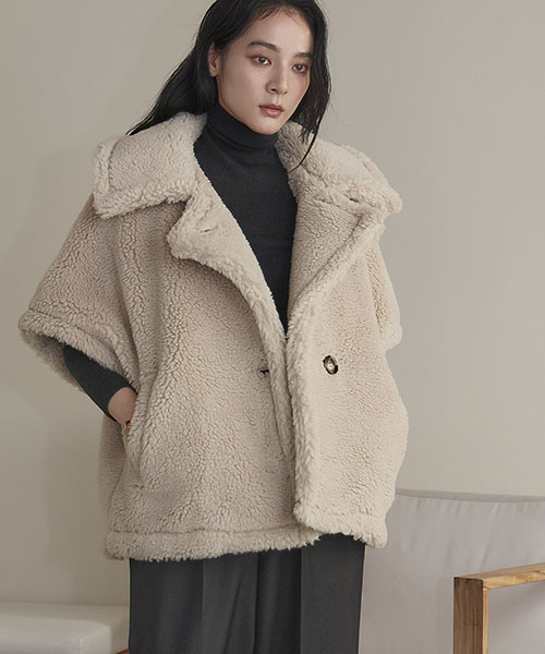 もこもことしたシープ調のボアに中綿を入れ、見た目にも暖かく、やわらかな着心地に仕上げています。