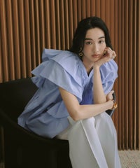 肩から二の腕にややかぶるくらいのラッフルが肩周りをふんわりとカバー。