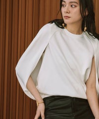 ケープを1枚羽織ったようなシルエットが特徴のトップス。
