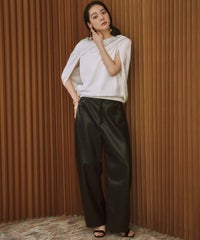 合わせるボトムス次第で、雰囲気をがらりと変えるデザイントップスです。