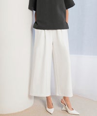 柔らかな薄手のダンボール生地を使用したミディレングスのワイドパンツ。