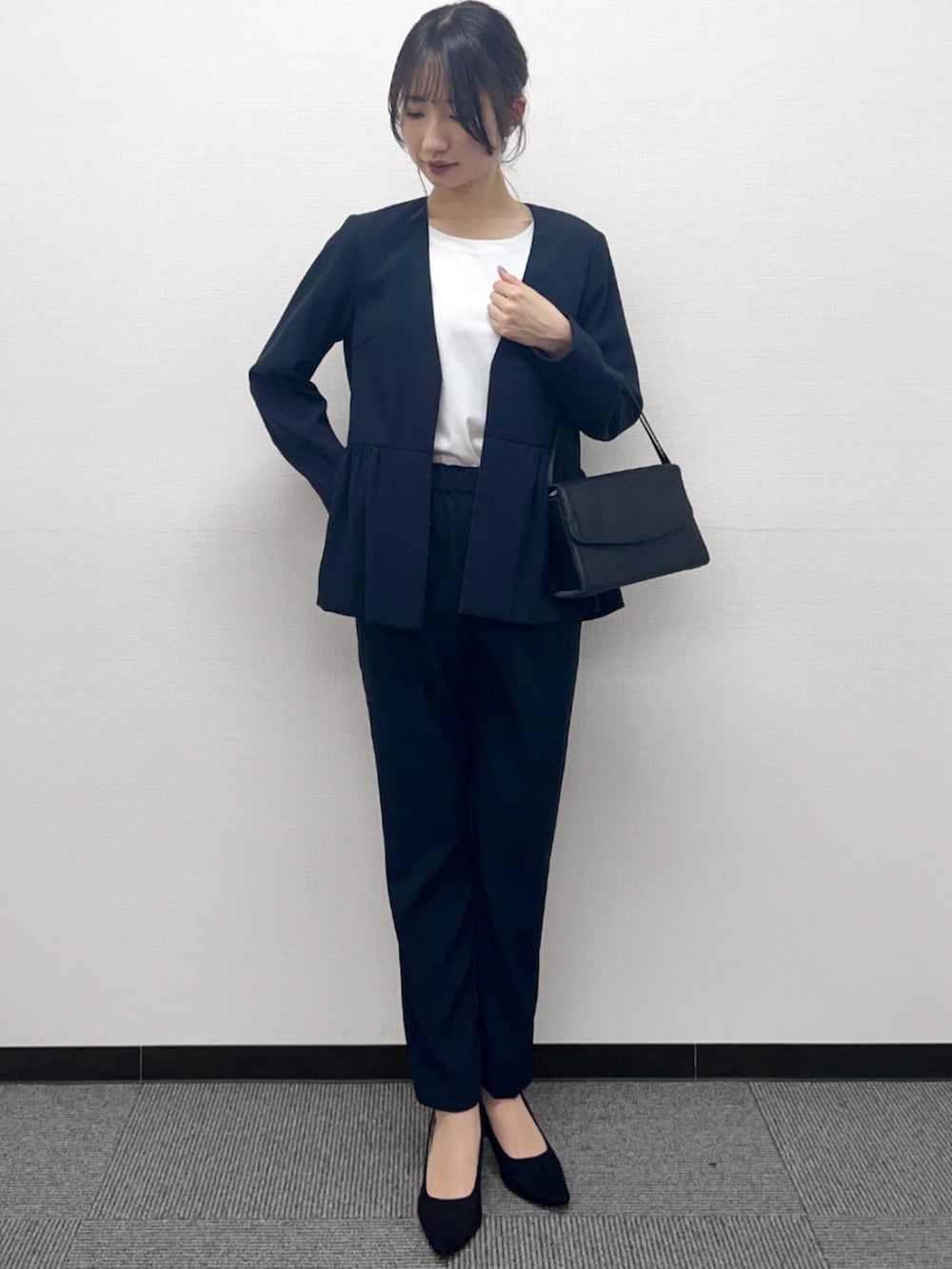 普段の仕事用とかはスーツ専門点で買いますが、ママっぽいのを探して初めてこちらのスーツを試してみました。ペプラムジャケットがウエストをカバーしてくれてよかったのと、普段はMサイズですが、今回はLサイズを選びました。ジャケットはちょうど良かったのですが、パンツが少しゆったりめでした。でも、全体的なシルエットは綺麗で、着心地も良かったです。いつものお店じゃない通販なのでサイズ選びだけが少し難しかったかな。購入した後に試着キャンペーンがよかったのかなと思いました。ちゃんと読んでおけばよかったです。今度は試着で選びたいです。