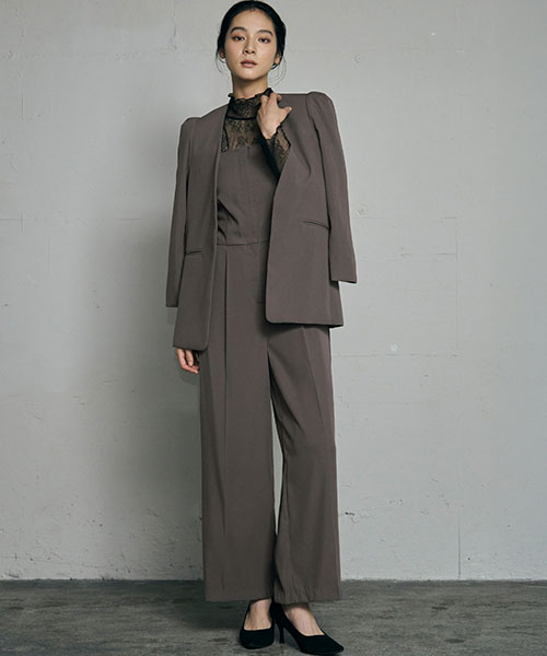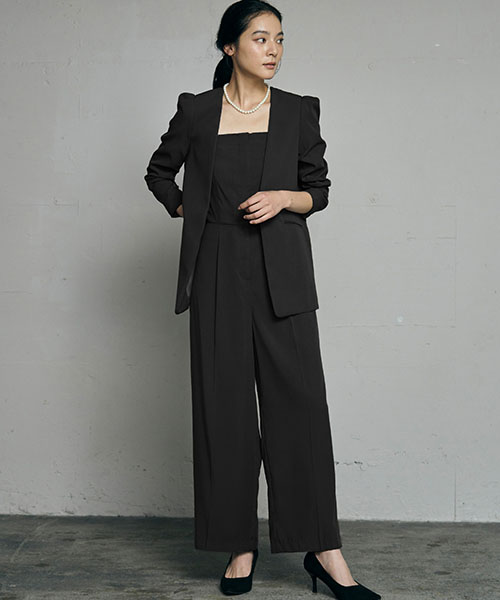 Flolia(フロリア) 洗える・ノーカラージャケット&オールインワンのオケージョン対応2点セットアップスーツ