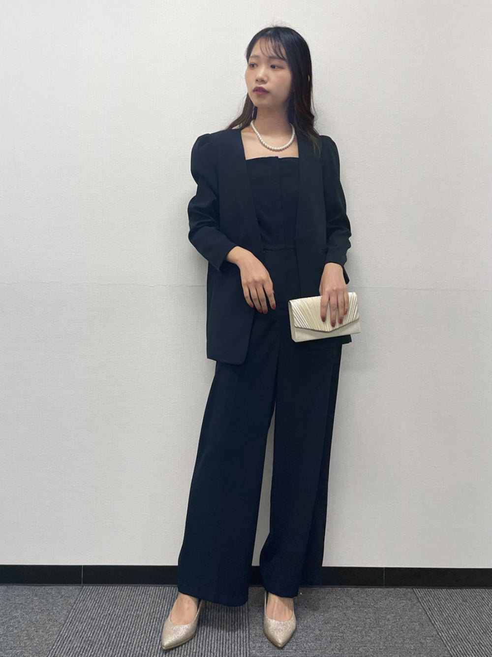 ジャケットとオールインワンは共布の、さらりとして滑らかな生地を使用しています。